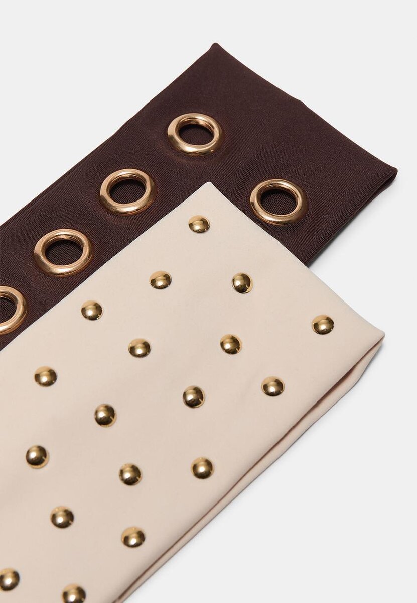 Lot de 2 bandeaux en fourrure avec clous chez Stradivarius pour seulement 17,9 $ Disponible pour une durée limitée. Mocacos Nuevo pour femmes Toujours tendance, venez découvrir dès maintenant !