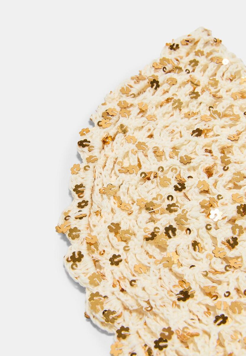 Casquette au crochet ornée de paillettes. Orné d’une bordure ondulée. Disponible en plusieurs couleurs.