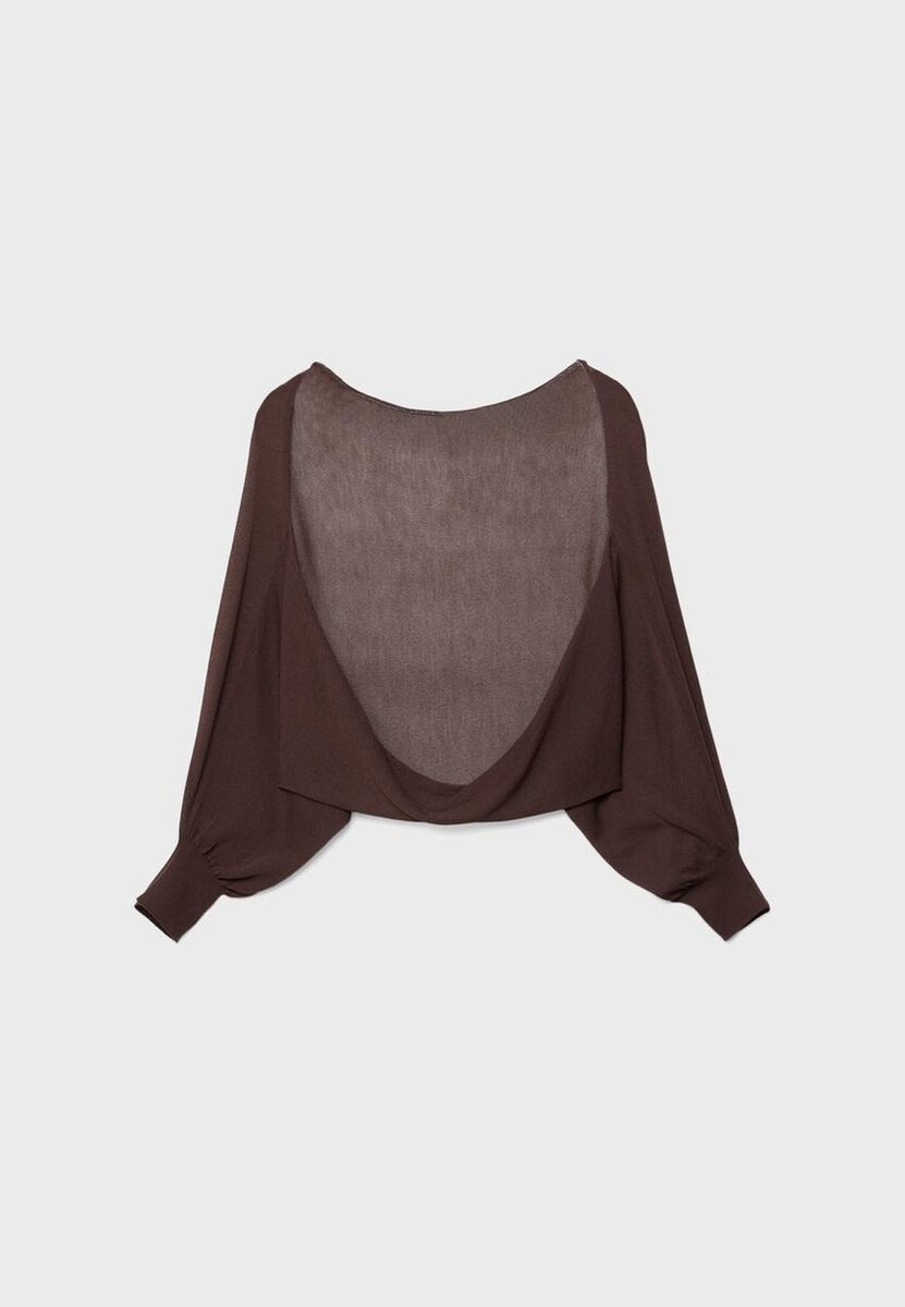 Cardigan confectionné dans un tissu en maille mélangée de viscose. Doté de manches longues volumineuses avec des ourlets à revers.