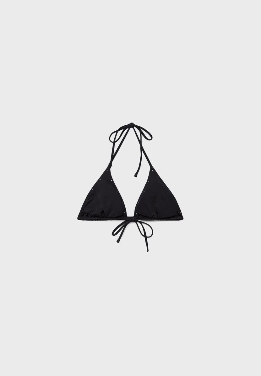 Haut de bikini triangle ajustable avec nouage au cou et dans le dos. Orné de clous. Disponible en plusieurs couleurs.