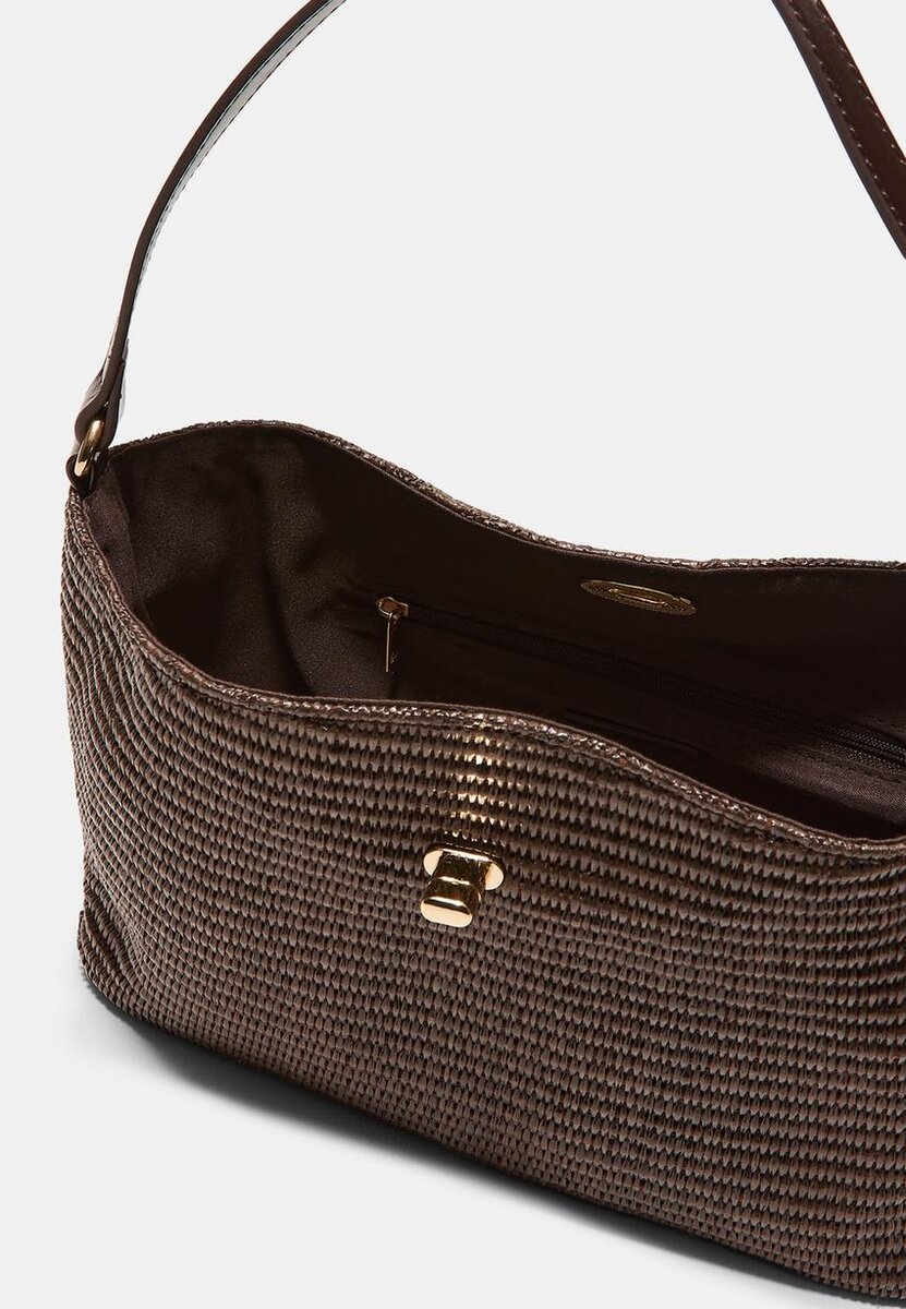Sac à bandoulière avec partie supérieure en crochet. Bandoulière. Fermeture à glissière. Disponible en plusieurs couleurs.