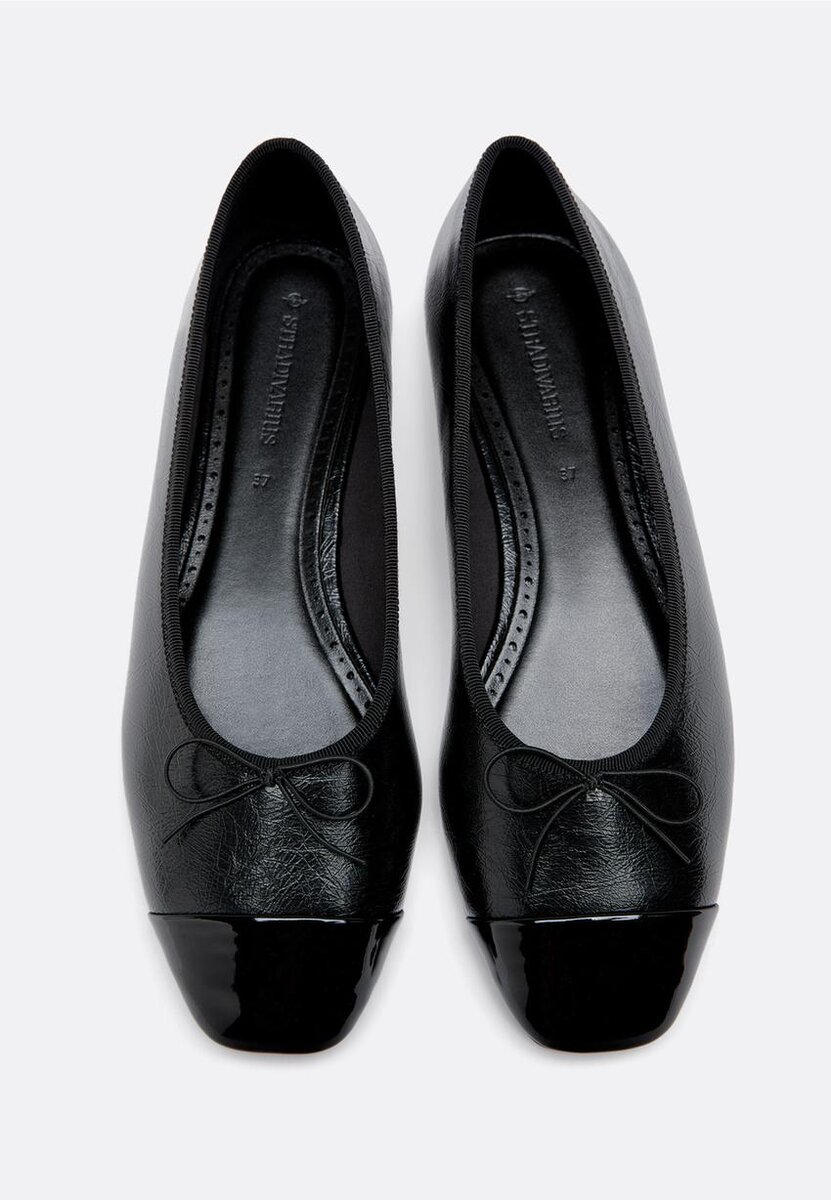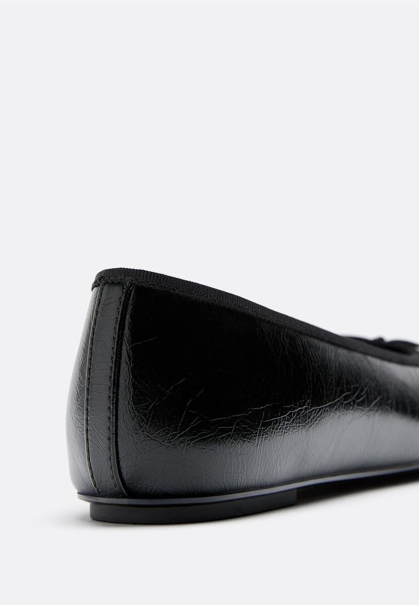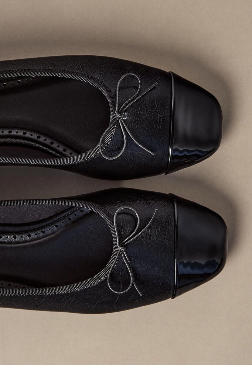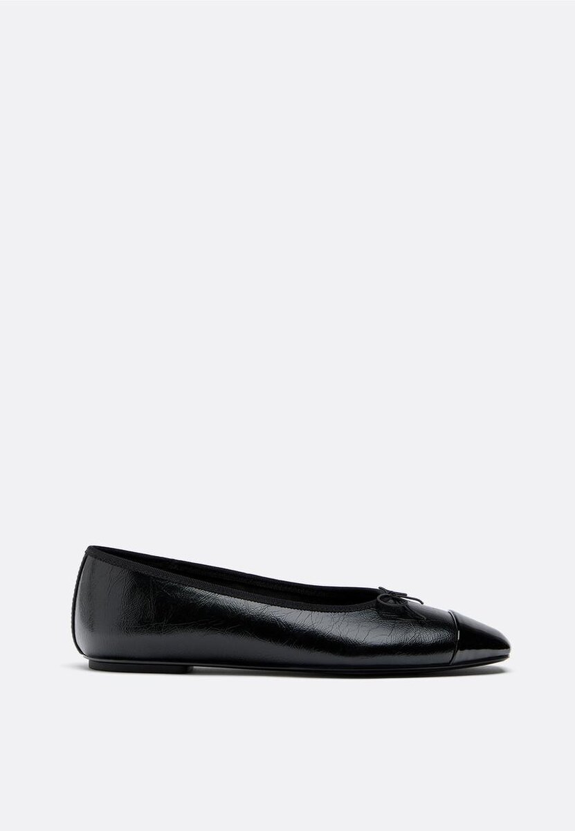 Ballerines effet cuir avec bout en cuir verni. Nœud sur le bout pointu.