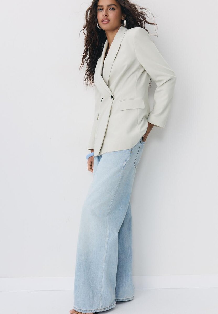 Blazer ajusté avec col à revers et manches longues. Fausses poches passepoilées sur le devant et la poitrine. Fermeture à boutons sur le devant.