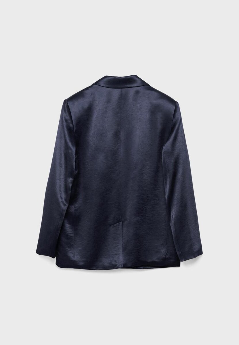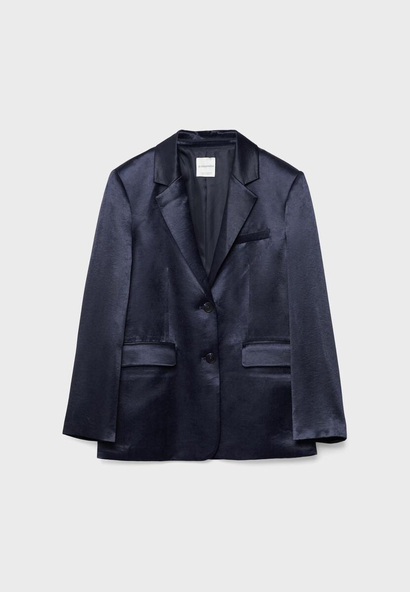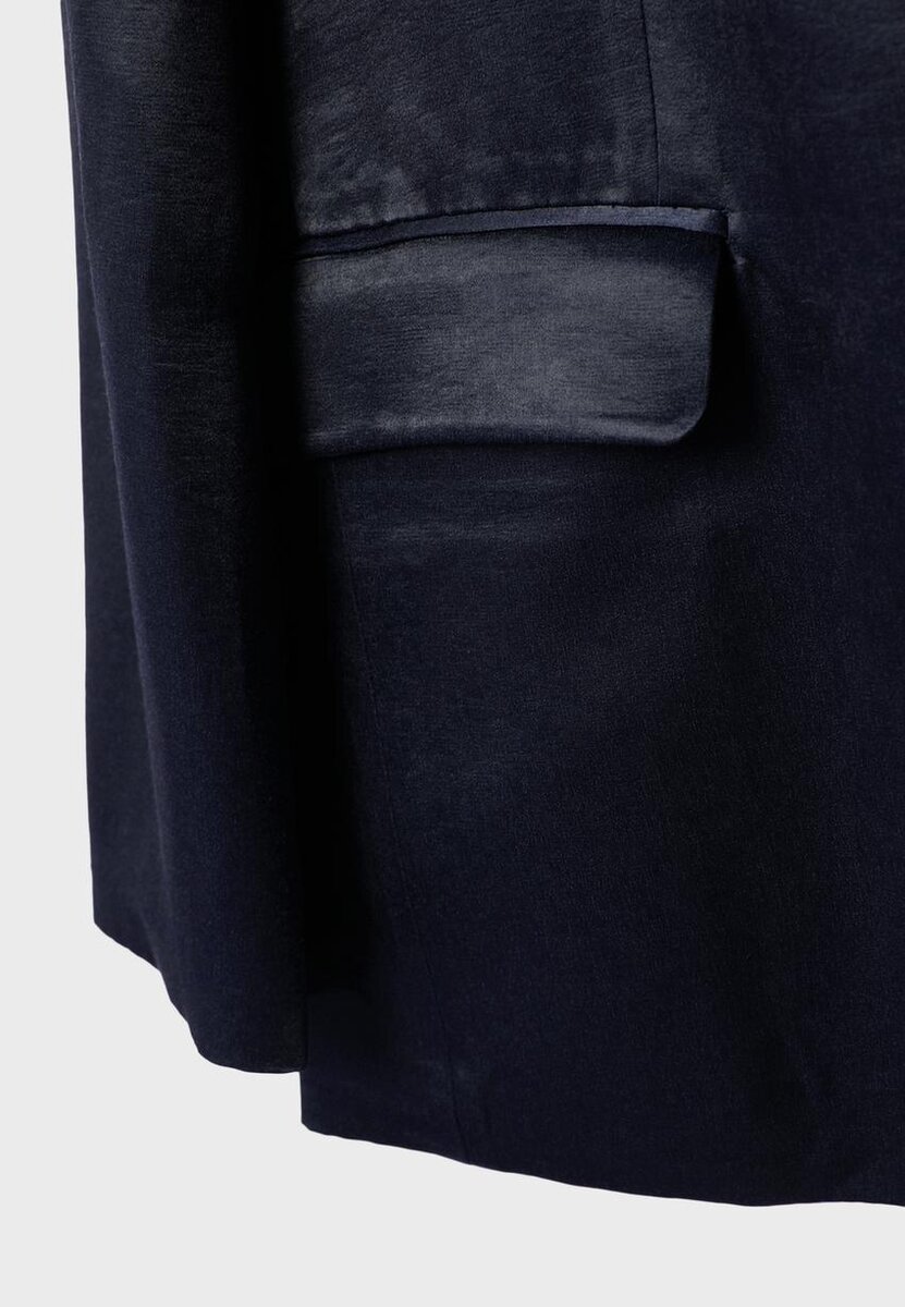 Blazer en satin à col à revers et manches longues. Doté de poches à rabat sur le devant et d’une fermeture à boutons sur le devant. Disponible en plusieurs couleurs.