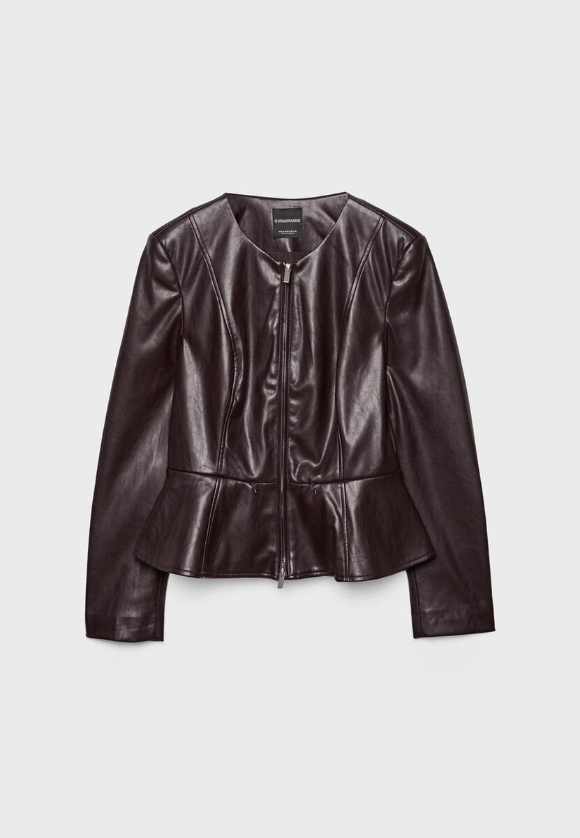 Blazer sans col à basque effet cuir chez Stradivarius pour seulement 69,9 $, disponible pour une durée limitée. Null pour femmes, toujours à la mode, venez le découvrir dès maintenant !