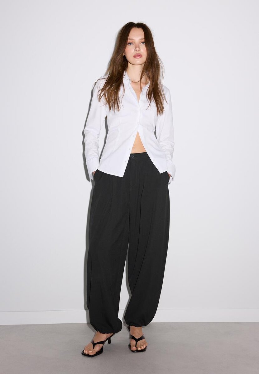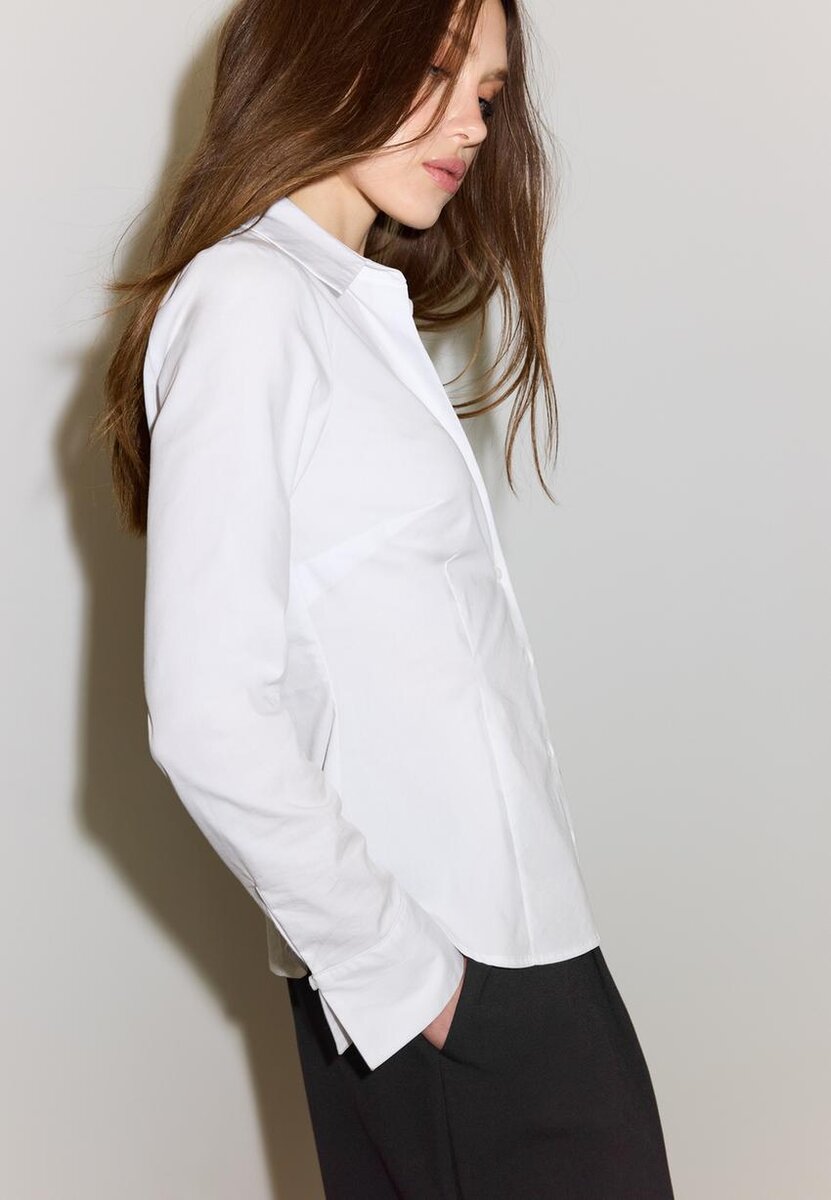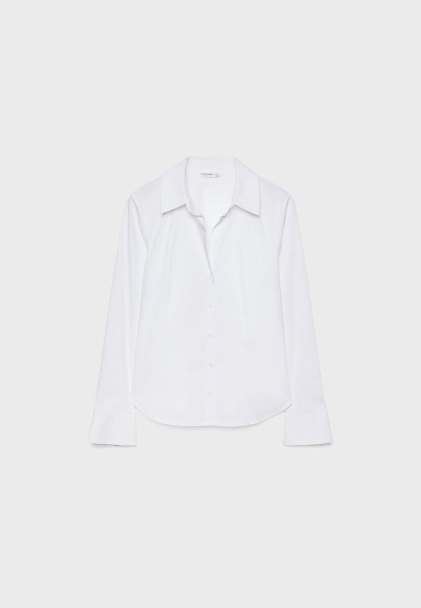 Chemise ajustée avec col Johnny et manches longues à revers. Disponible en plusieurs couleurs.