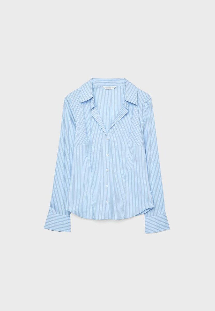 Chemise ajustée avec col Johnny et manches longues à revers. Disponible en plusieurs couleurs.