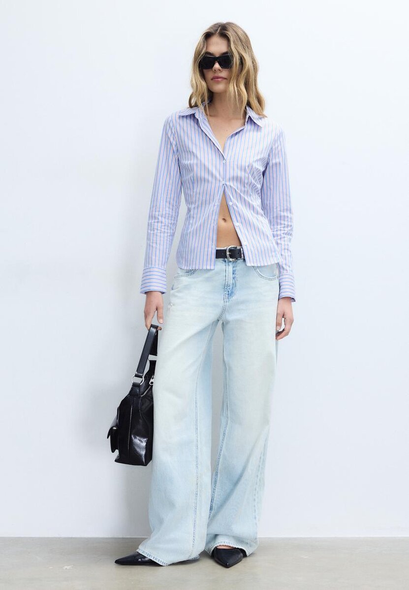 Chemise ajustée avec col Johnny et manches longues à revers. Disponible en plusieurs couleurs.