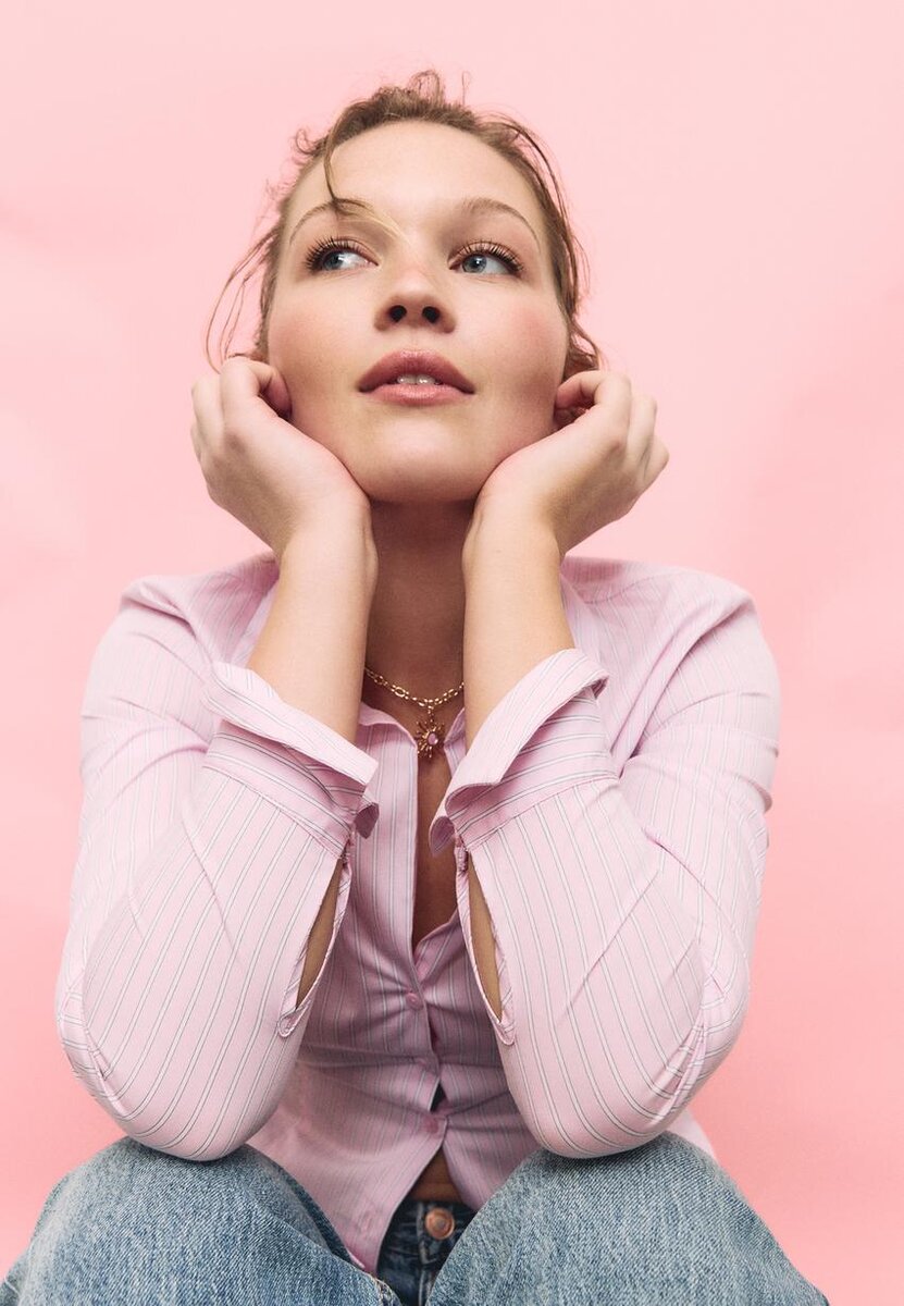 Chemise ajustée avec col Johnny et manches longues à revers. Disponible en plusieurs couleurs.