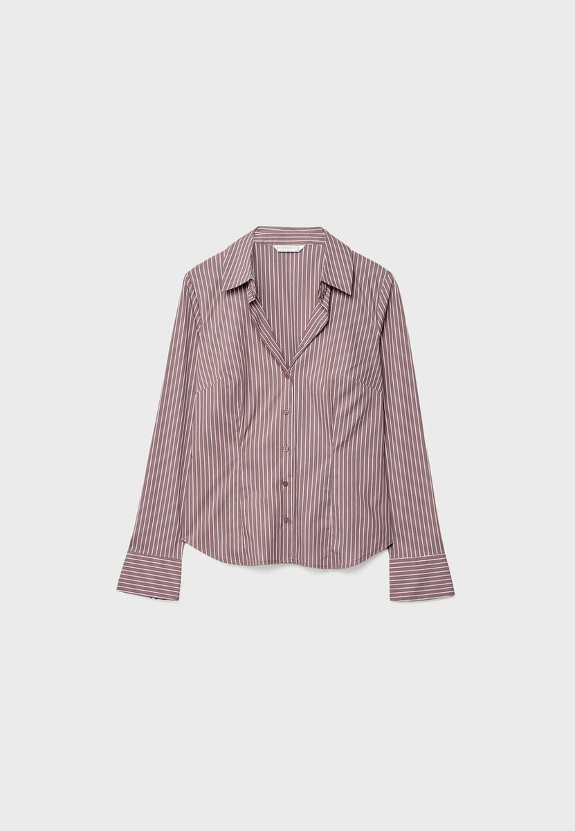 Chemise ajustée avec col Johnny et manches longues à revers. Disponible en plusieurs couleurs.