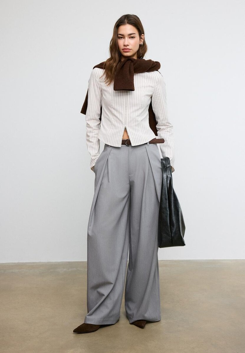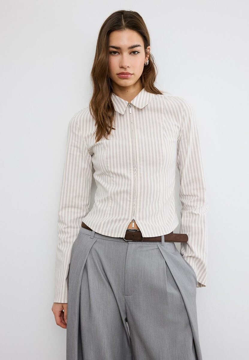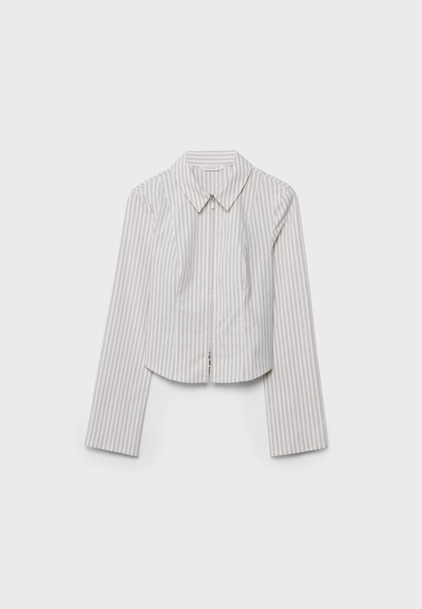 Chemise ajustée en bengaline. Col à revers et manches longues. Fermeture à l’avant avec une double fermeture éclair.