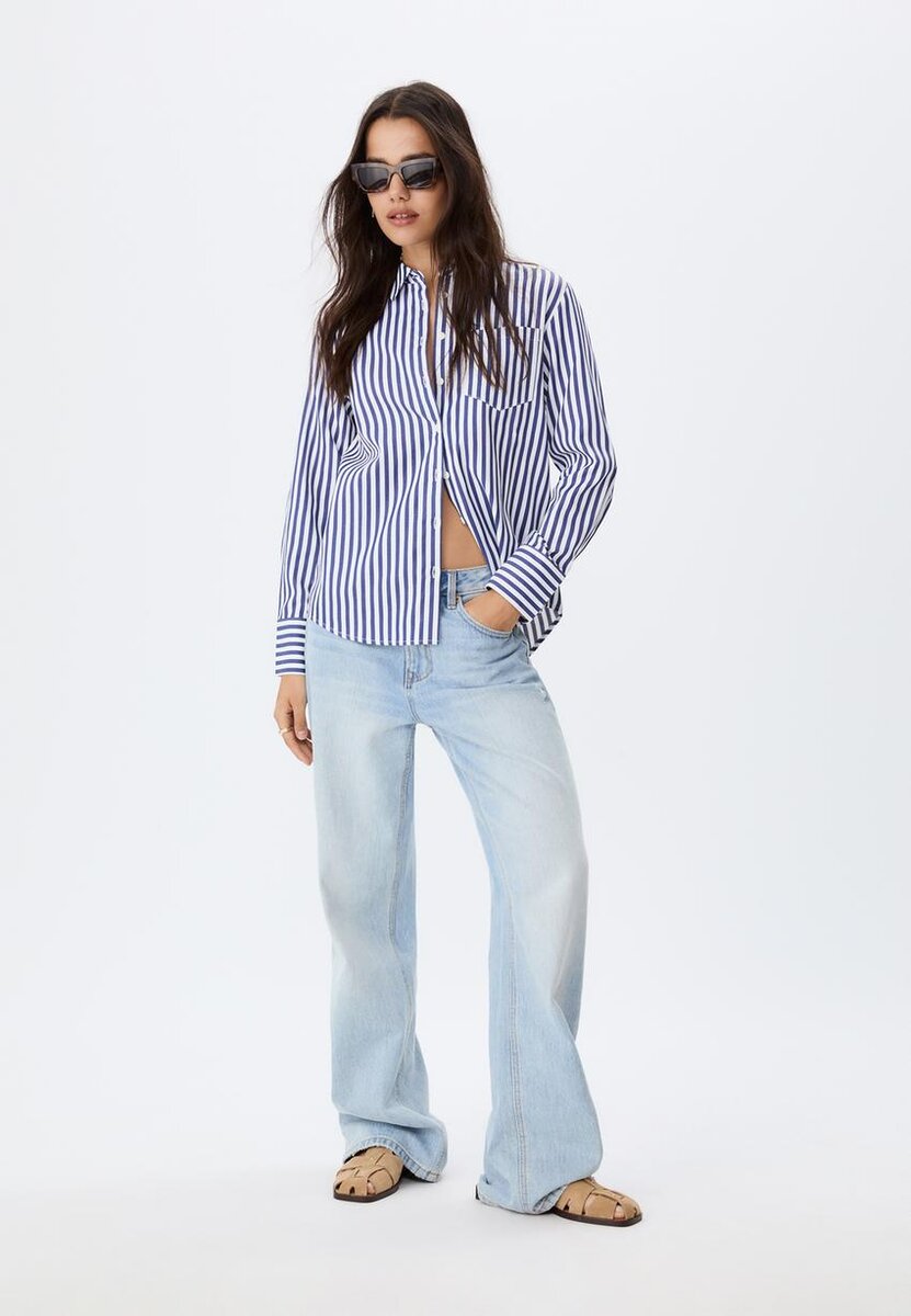 Chemise basique en popeline rayée avec poche
