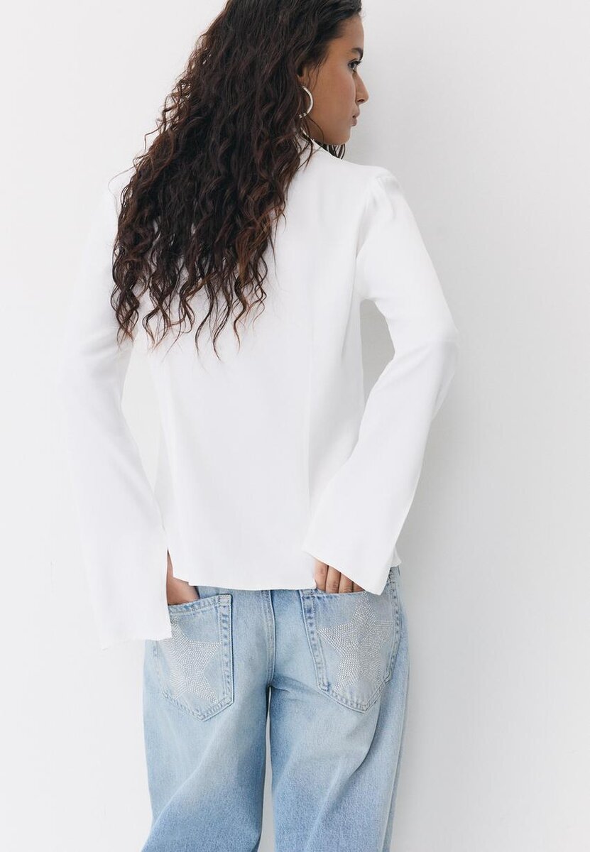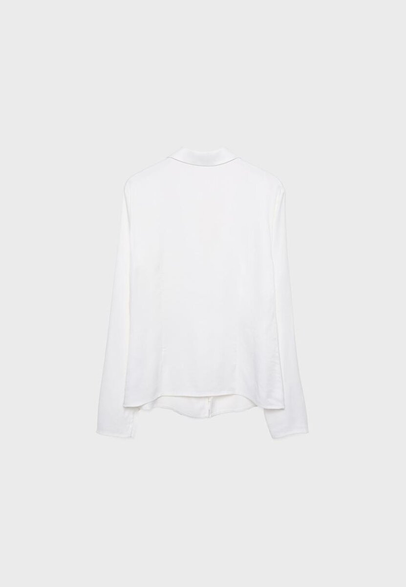 Chemise en tissu effet satin. Col à revers avec encolure en V et manches longues. Fermeture à liens sur le devant.