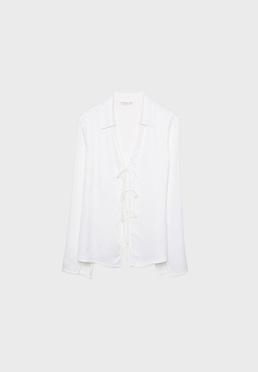 Chemise en satin à nouer chez Stradivarius pour seulement 39,9 $ Disponible pour une durée limitée. Null pour femmes Toujours tendance, venez la découvrir dès maintenant !