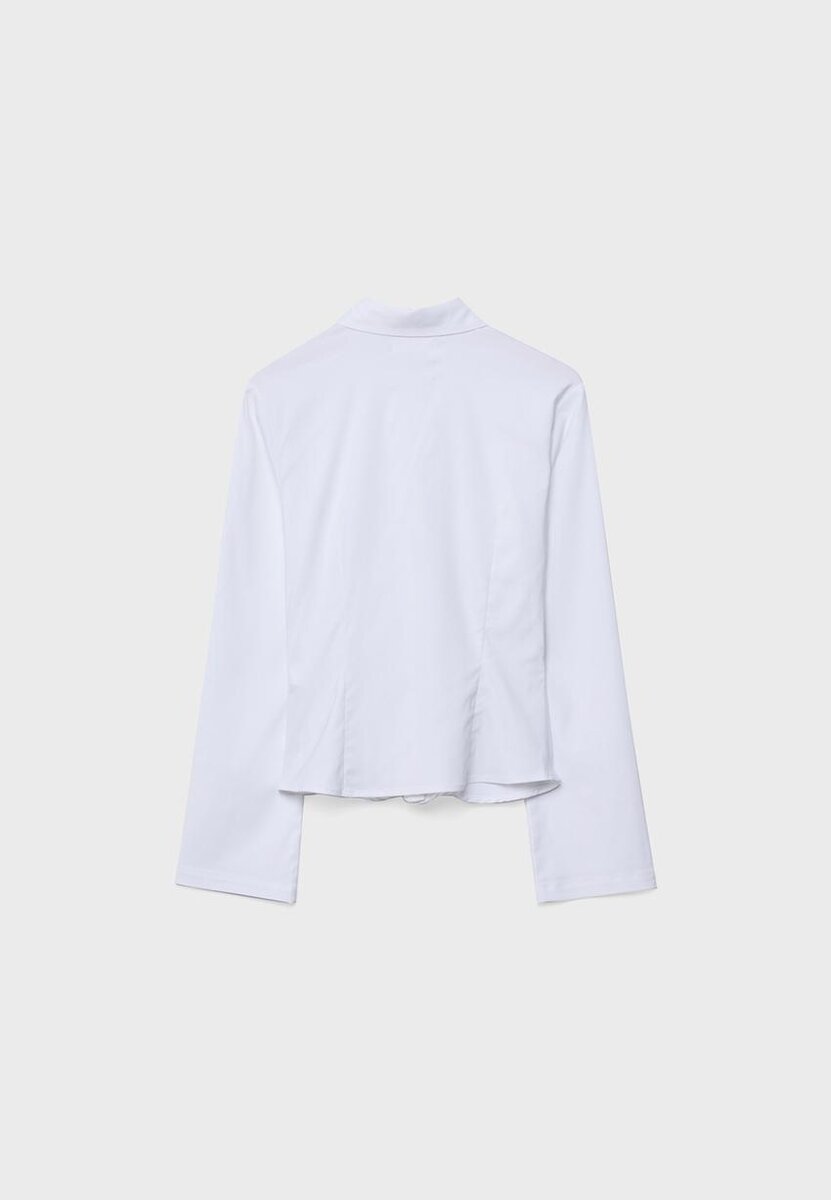 Chemise ajustée à col à revers et manches longues. Fermeture à boutons sur le devant et fronces sur le devant.