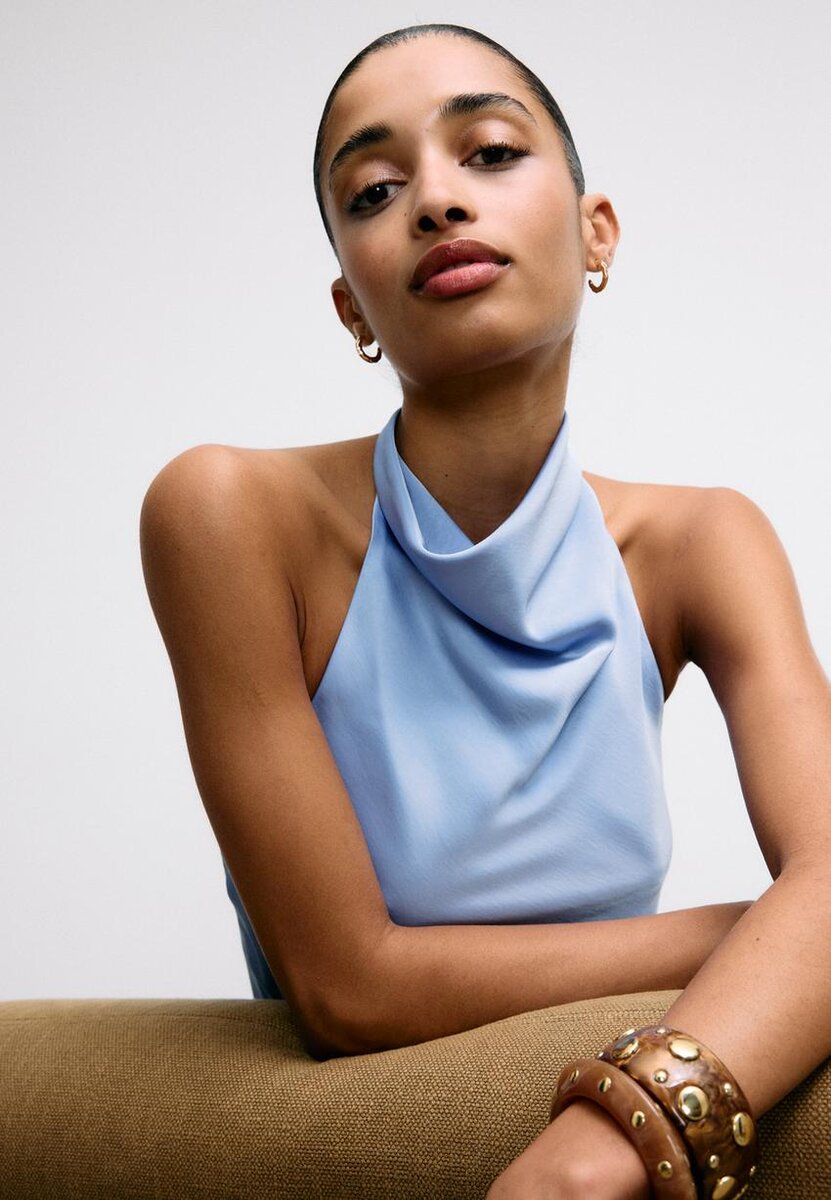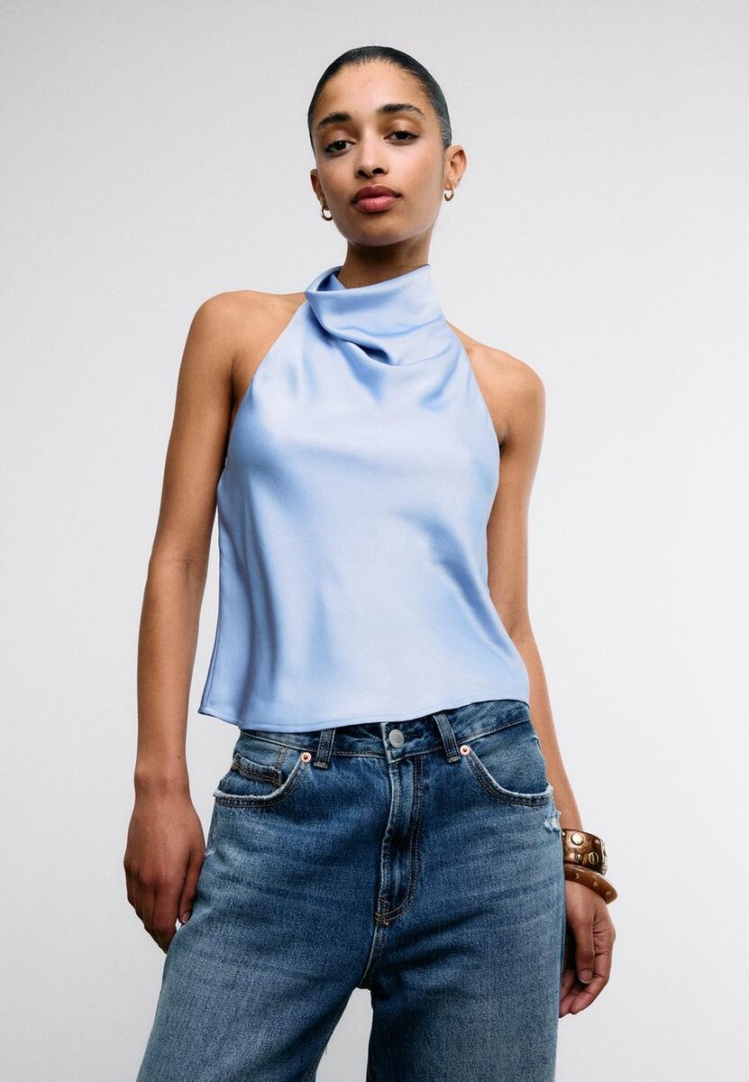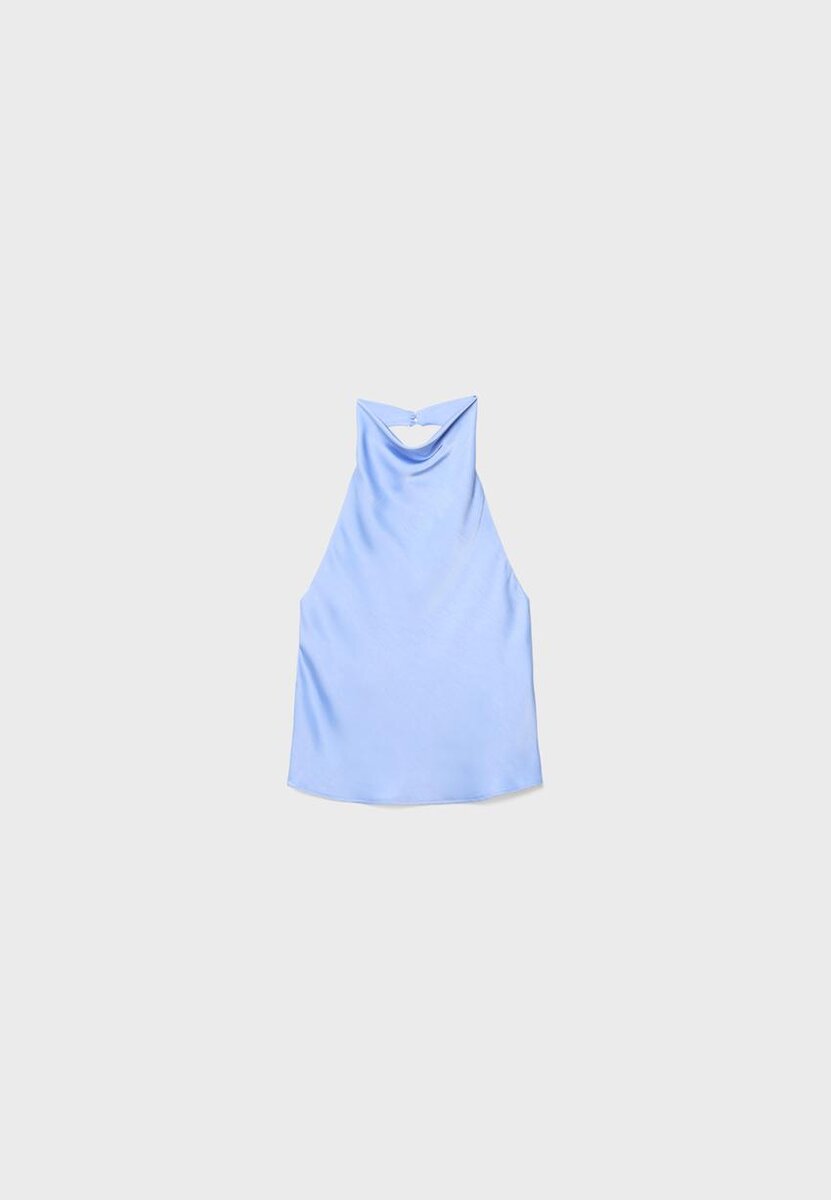 Hauts confectionnés dans un tissu effet satin. Fermeture à boutons dans le dos. Disponible en plusieurs couleurs.