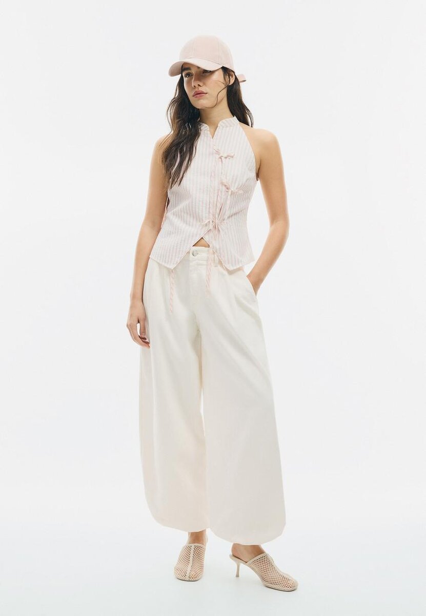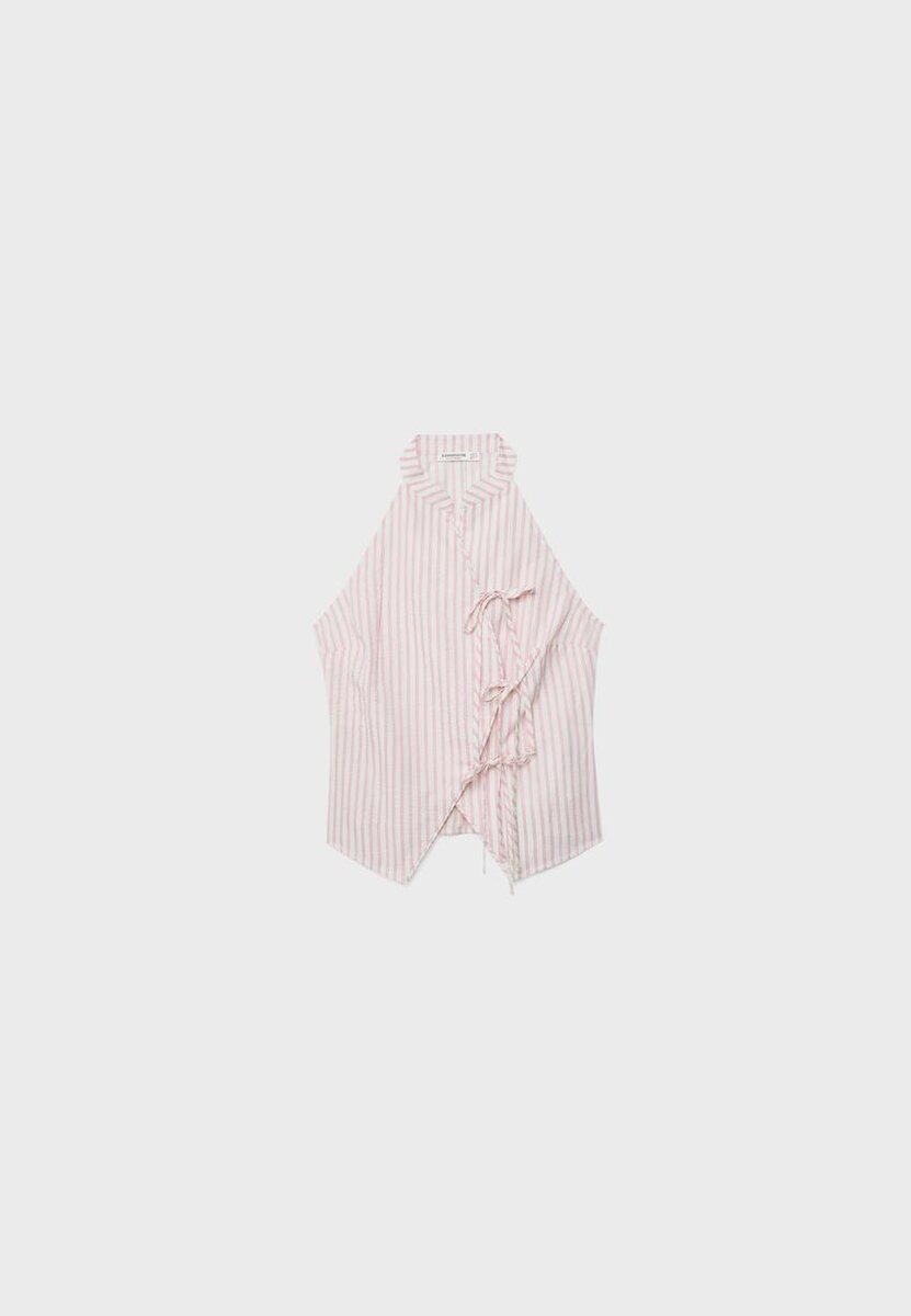 Haut dos nu style qipao à nœud semi-froissé