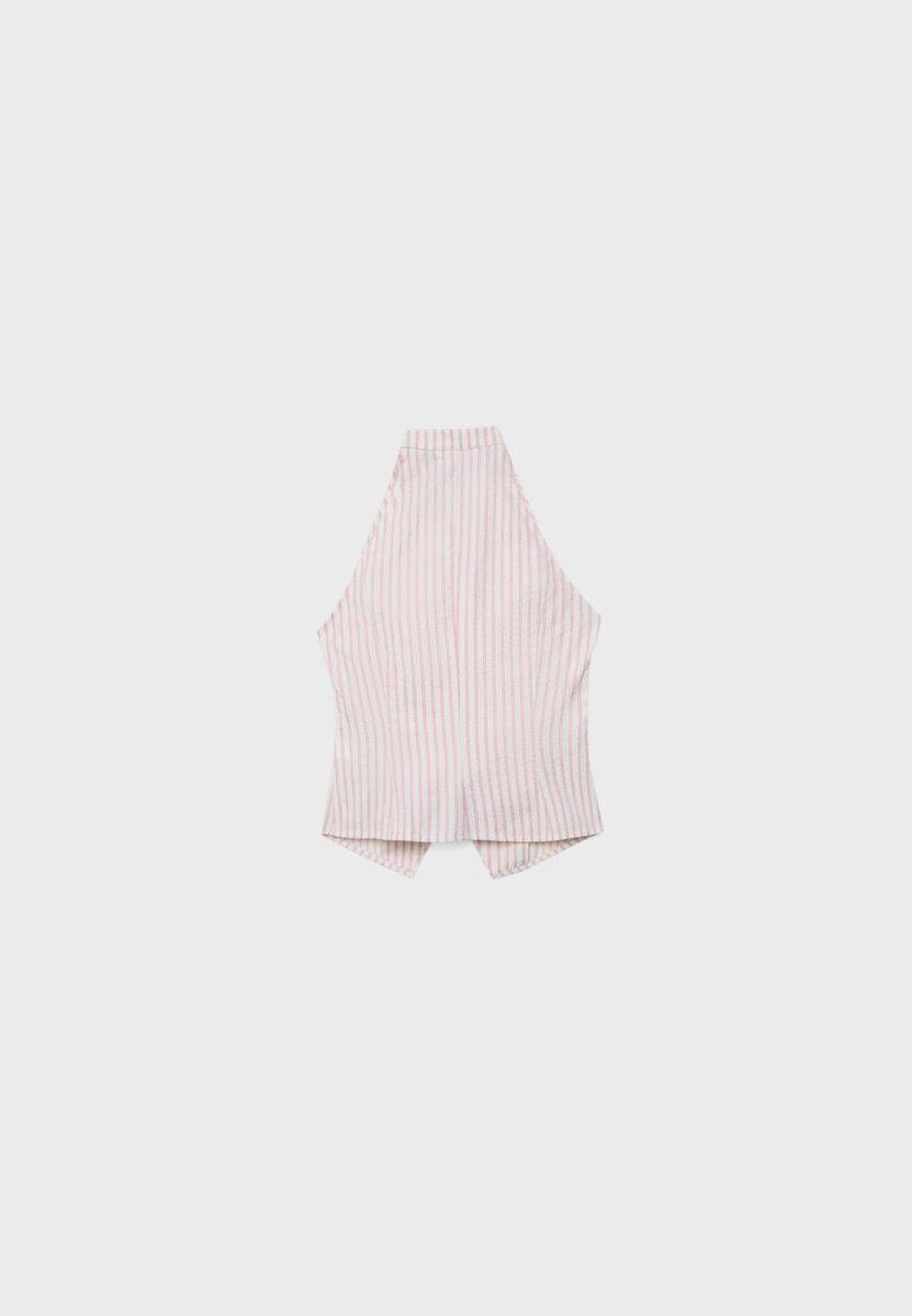 Hauts dos nu style qipao, confectionnés dans un tissu semi-froissé. Devant croisé avec fermeture à nouer assortie. Disponible en plusieurs couleurs.
