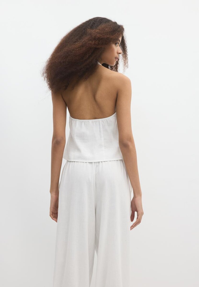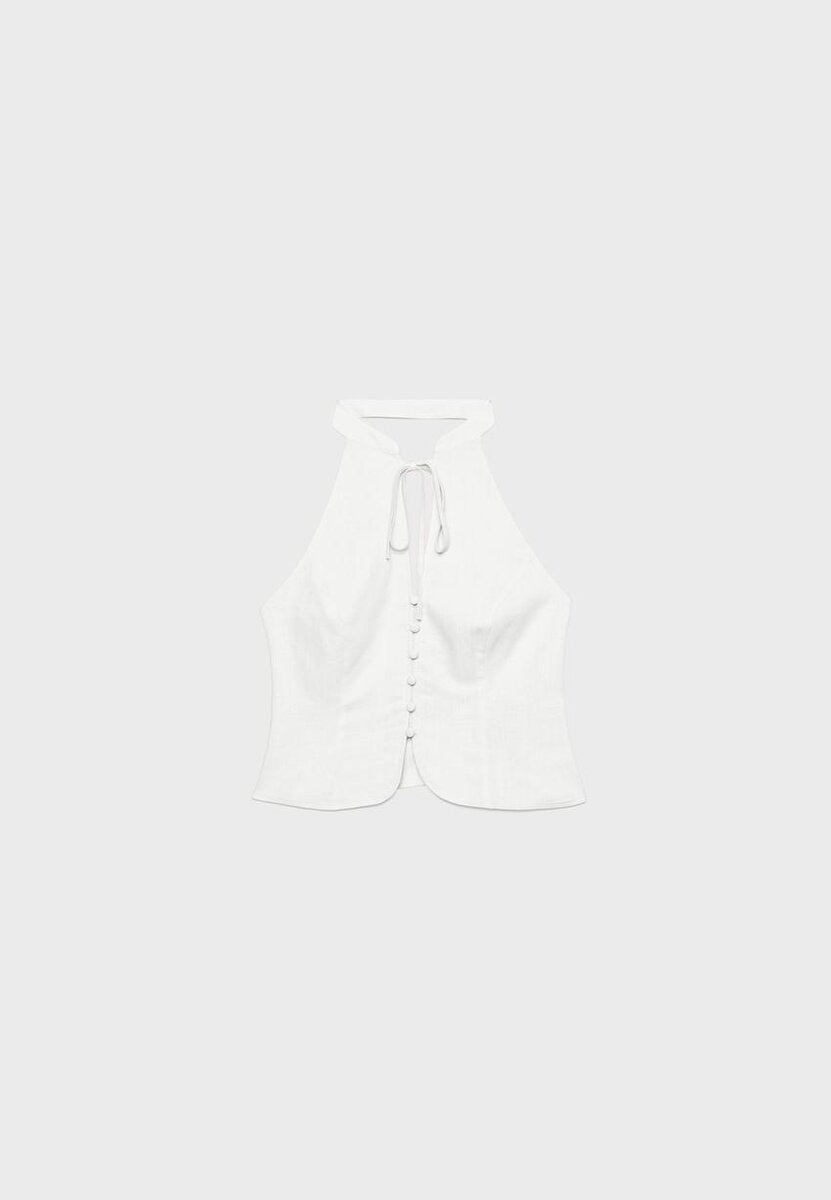 Hauts à nouer dans le cou style qipao. Fermeture à l’avant avec un nœud et des boutons. Détail élastiqué dans le dos. Disponible en plusieurs couleurs.