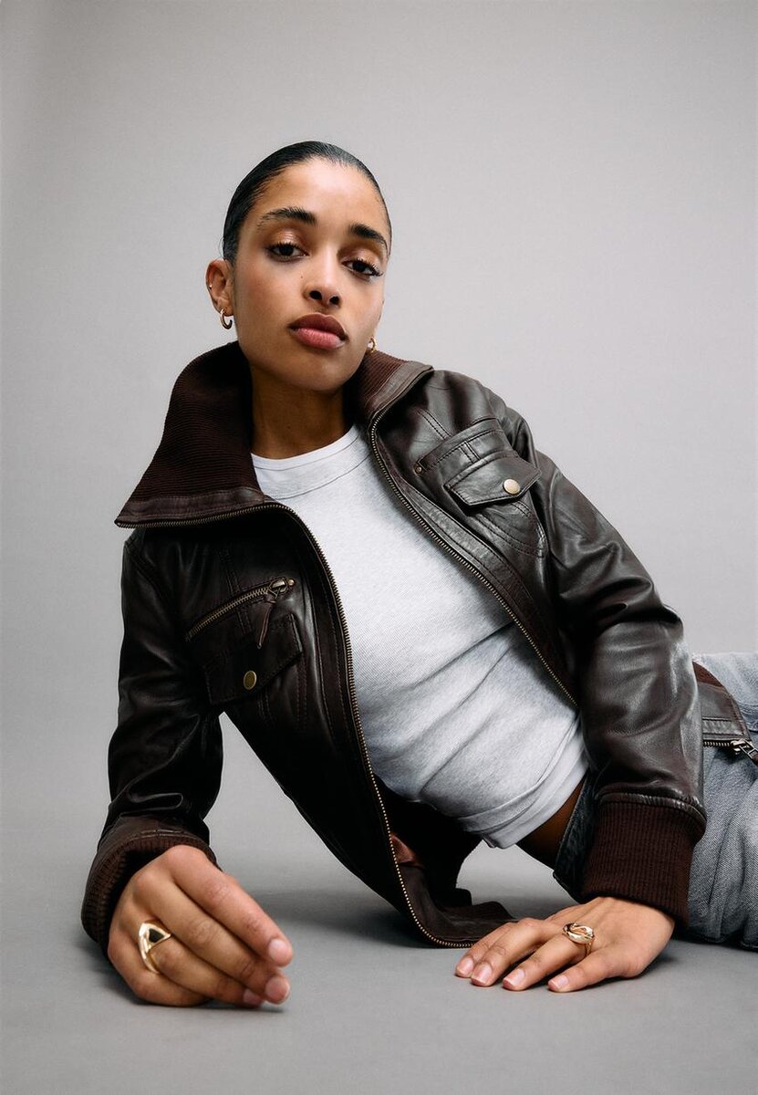 Veste en cuir côtelée