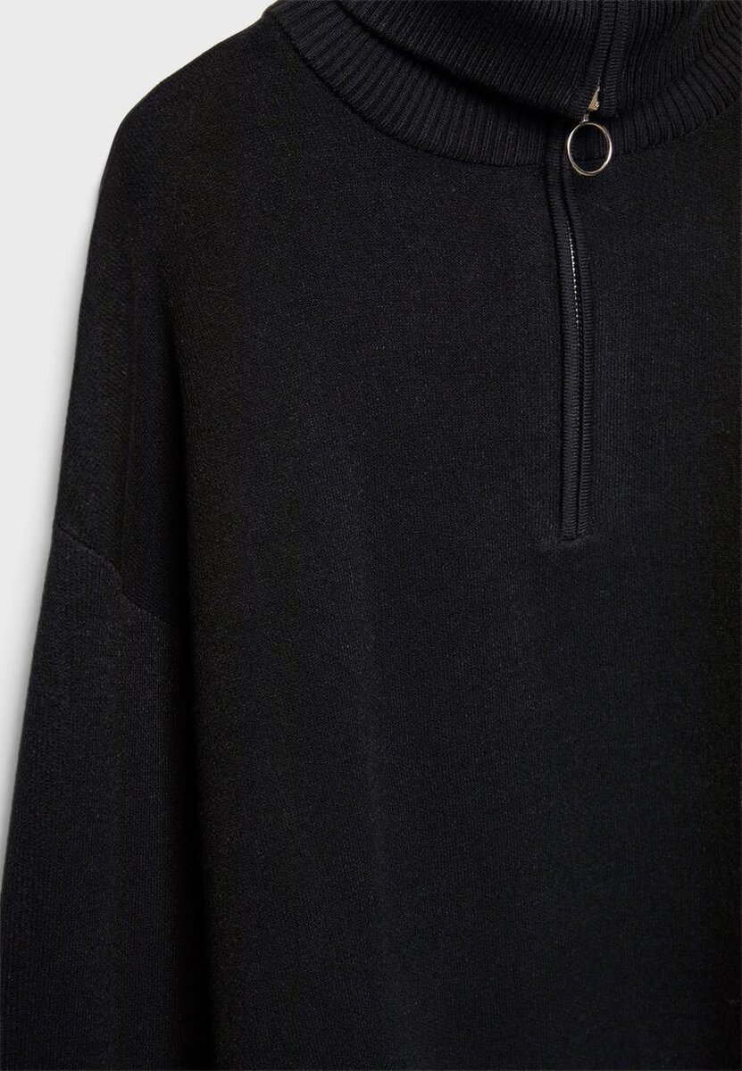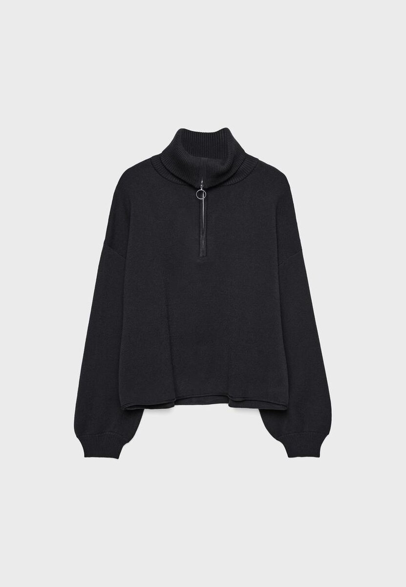Pull en maille à col montant avec fermeture éclair. Manches longues avec poignets élastiques. Bordures côtelées. Ourlet Seamless avec détail retroussé. Disponible en plusieurs couleurs.