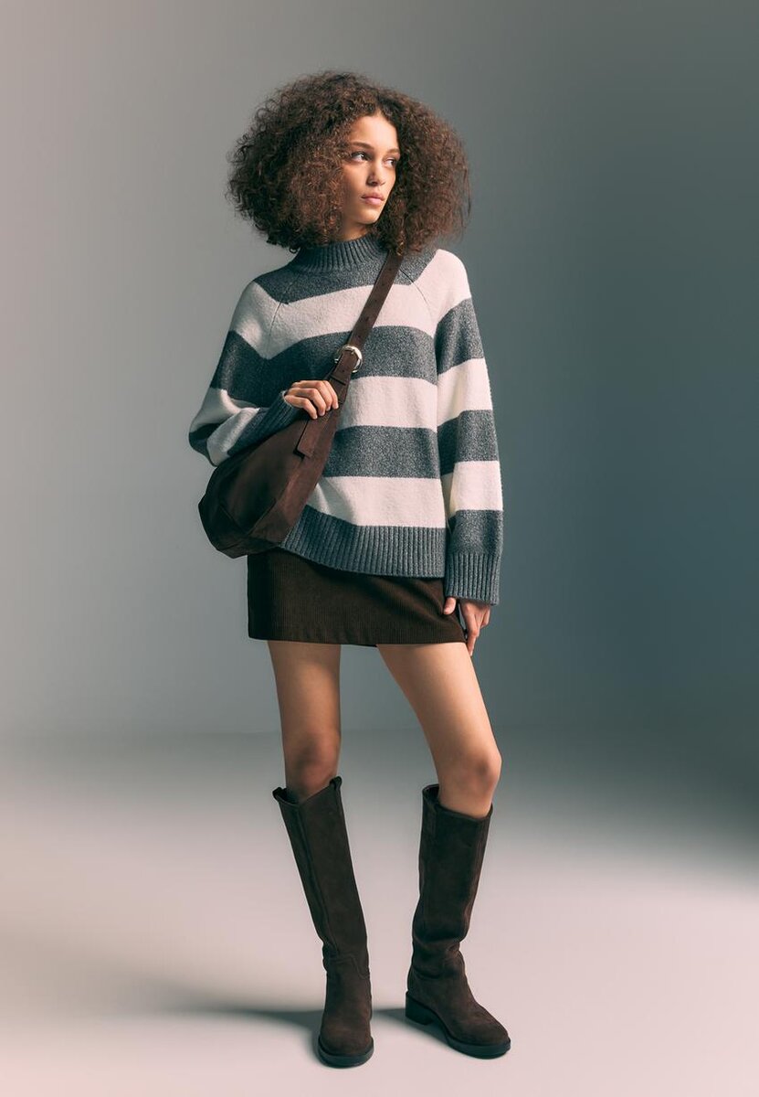 Pull en maille à col rond et manches longues. Bords-côtes. Disponible en plusieurs couleurs.
