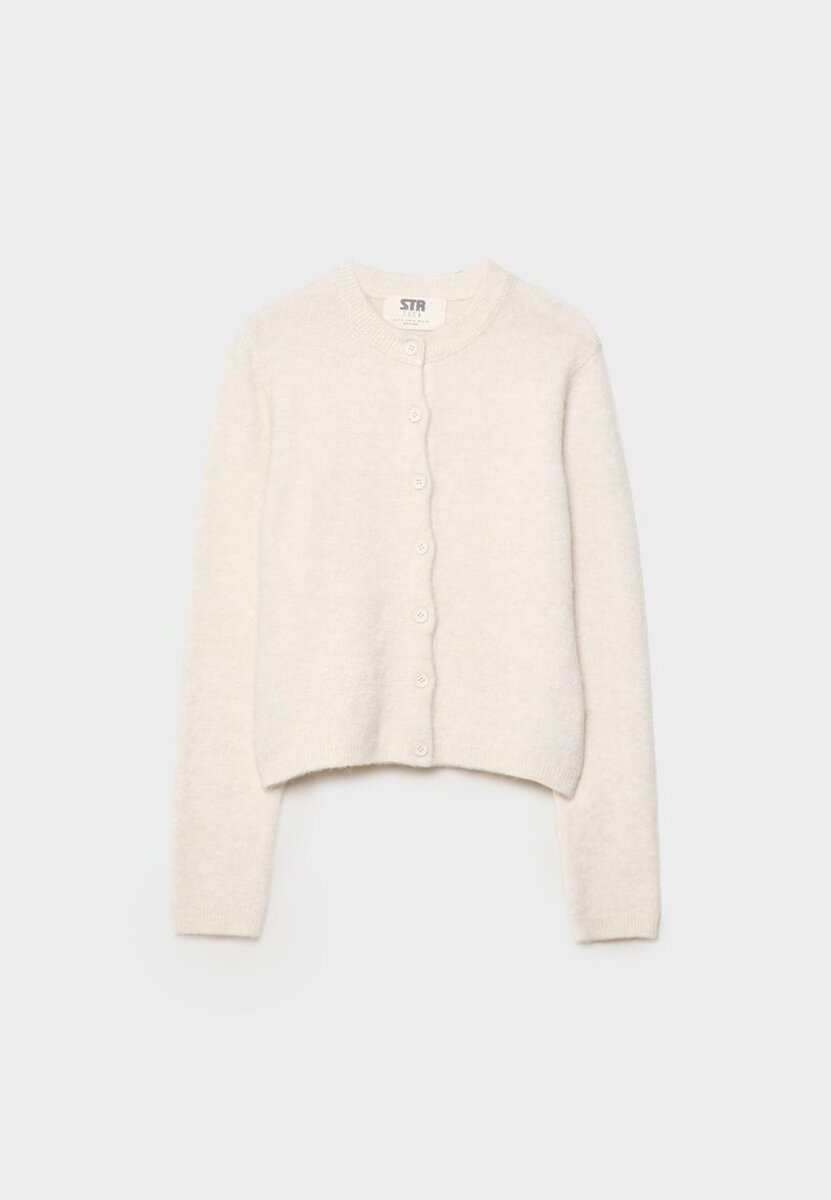 Veste en tricot à col rond et manches longues. Fermeture à boutons sur le devant. Disponible en plusieurs couleurs.