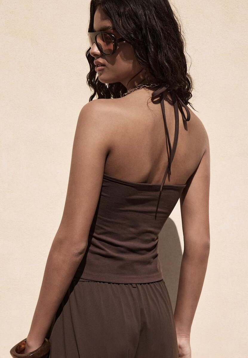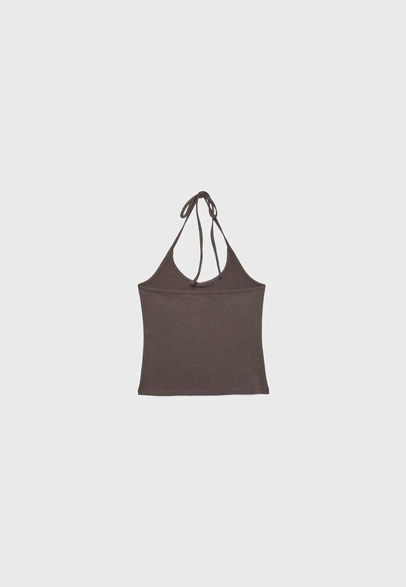 Haut dos nu ajusté. Doté de fines bretelles réglables à nouer et d’un dos nu. Disponible en plusieurs couleurs.