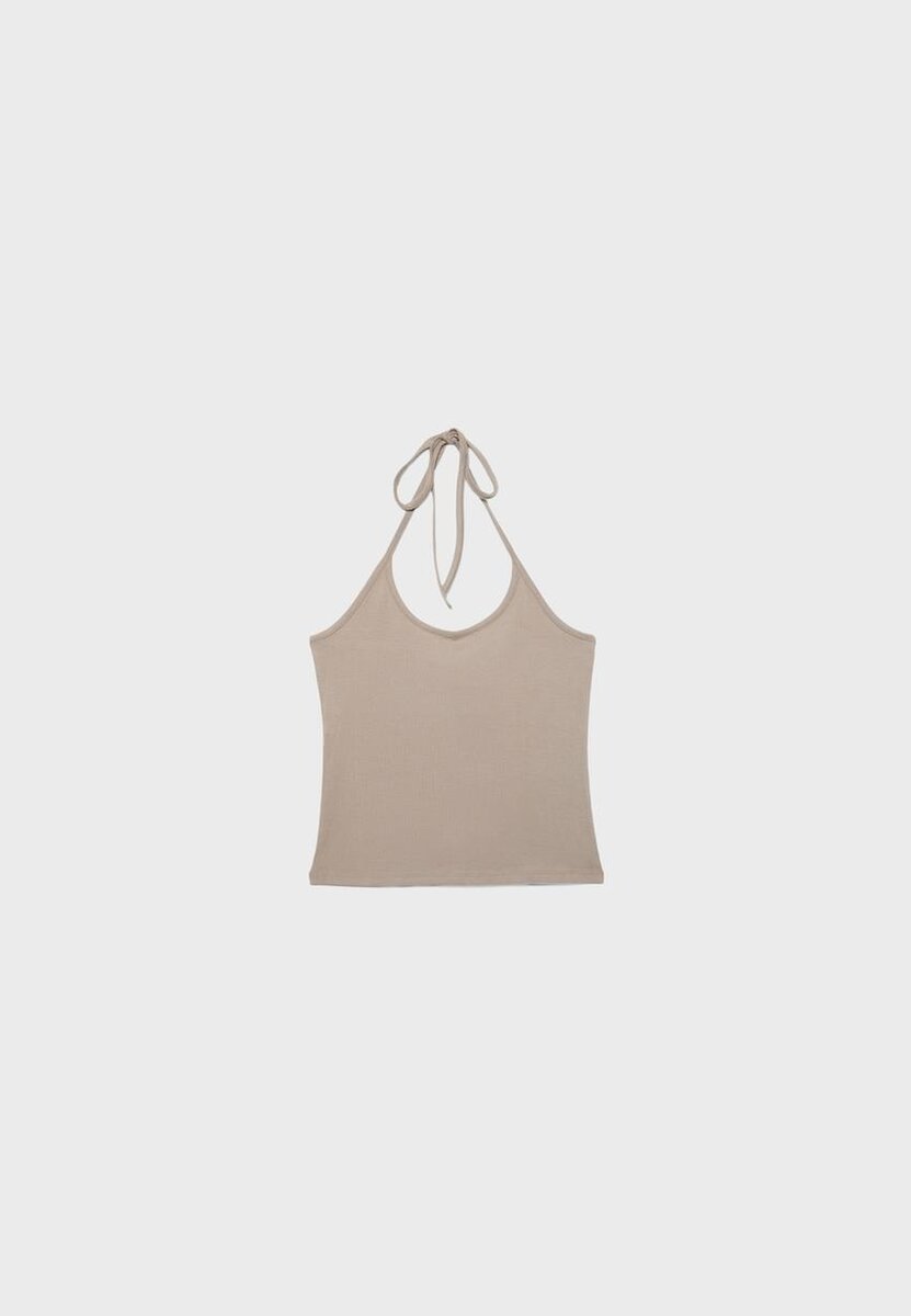 Haut dos nu ajusté. Doté de fines bretelles réglables à nouer et d’un dos nu.