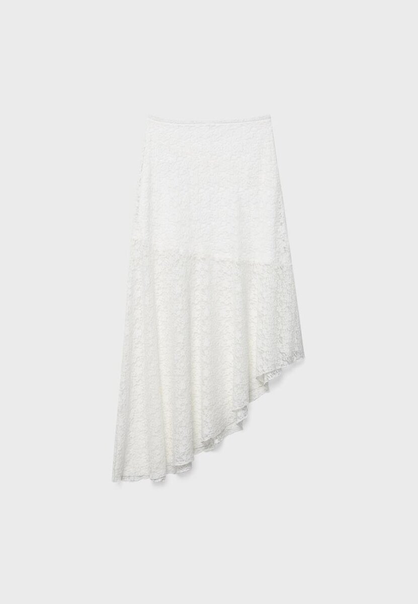 Jupe midi asymétrique en dentelle