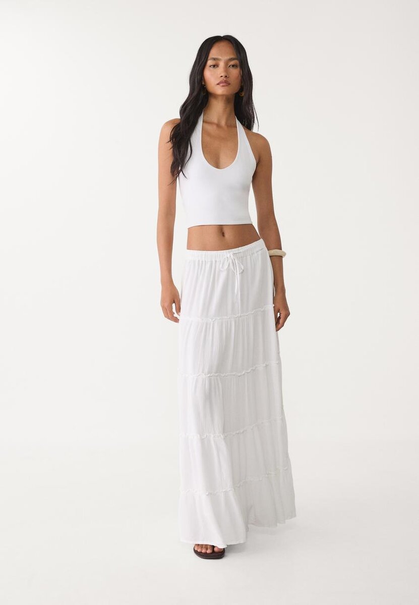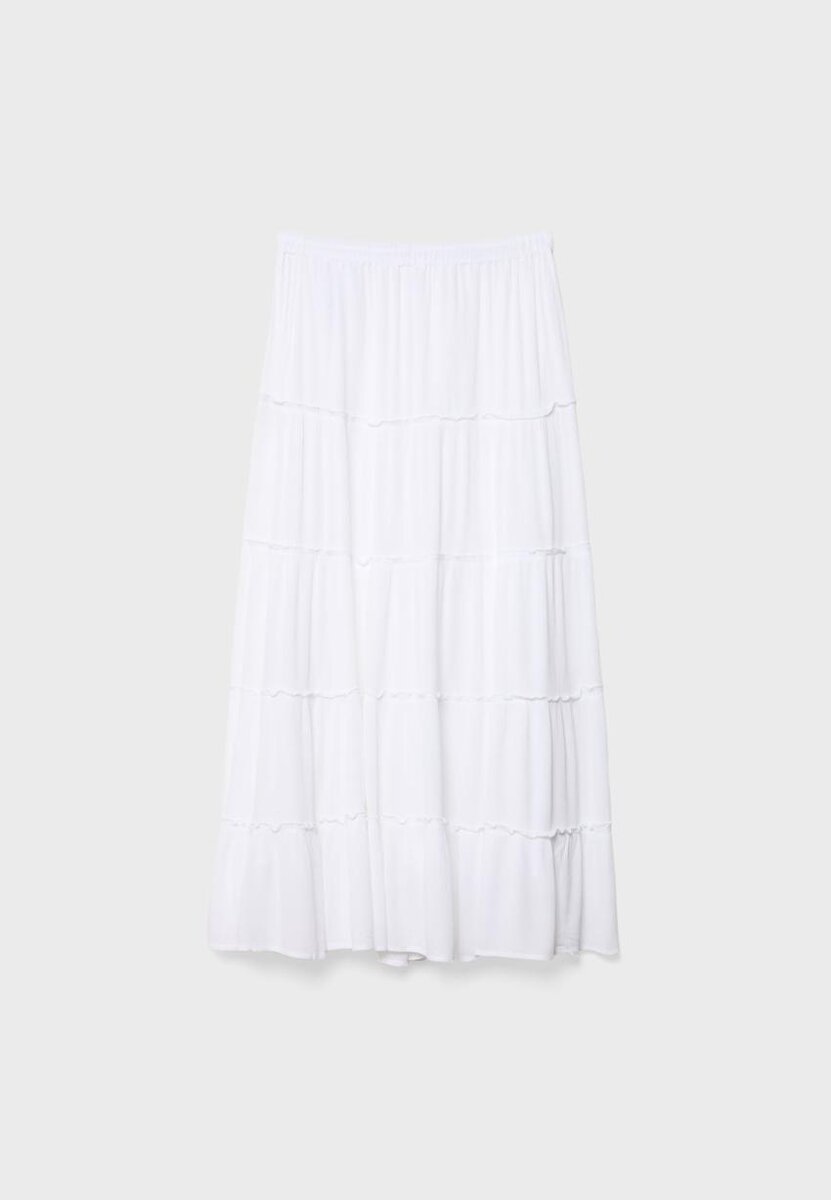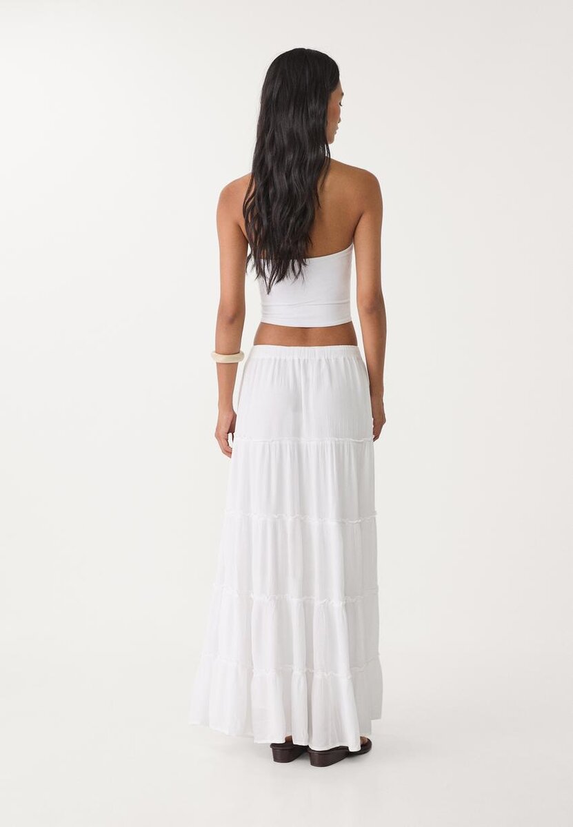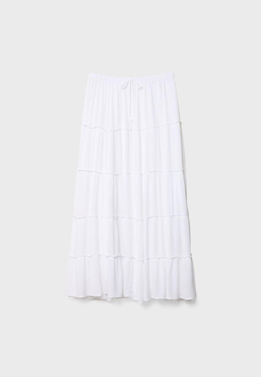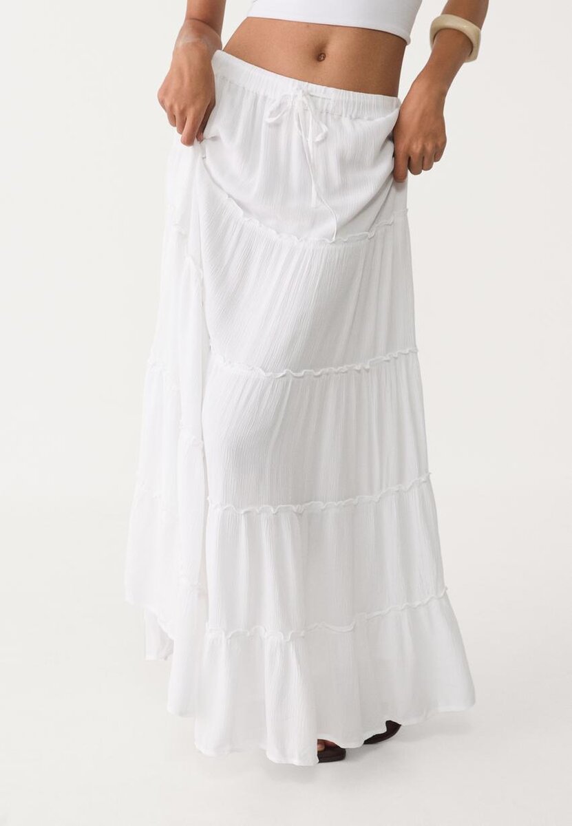 Jupe midi ample à taille mi-haute en viscose. Dotée d’une taille élastiquée avec cordons de serrage réglables et d’un ourlet à panneaux.