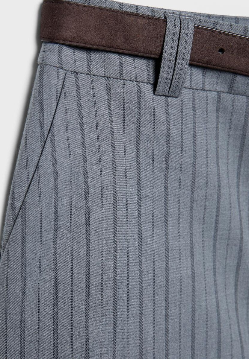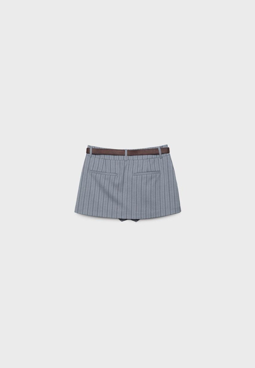 Mini-Skort taille moyenne avec passants de ceinture. Ceinture amovible contrastée avec boucle métallique. Fermeture latérale par zip invisible. Doublure intérieure. Disponible en plusieurs couleurs.
