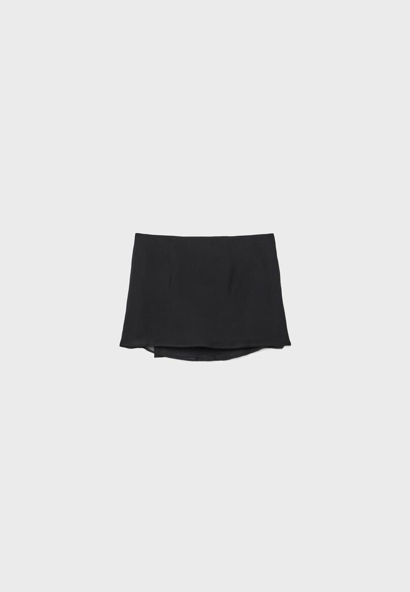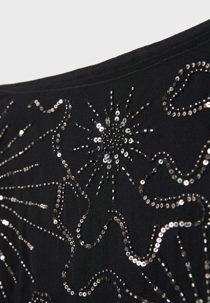 Mini-Skort courte de style croisé en viscose. Taille haute. Ornée de broderies et d’appliqués de perles sur le devant. Doublure intérieure. Fermeture à nouer sur le côté.