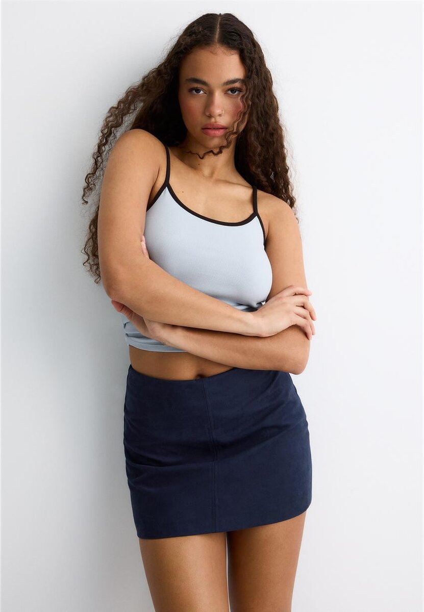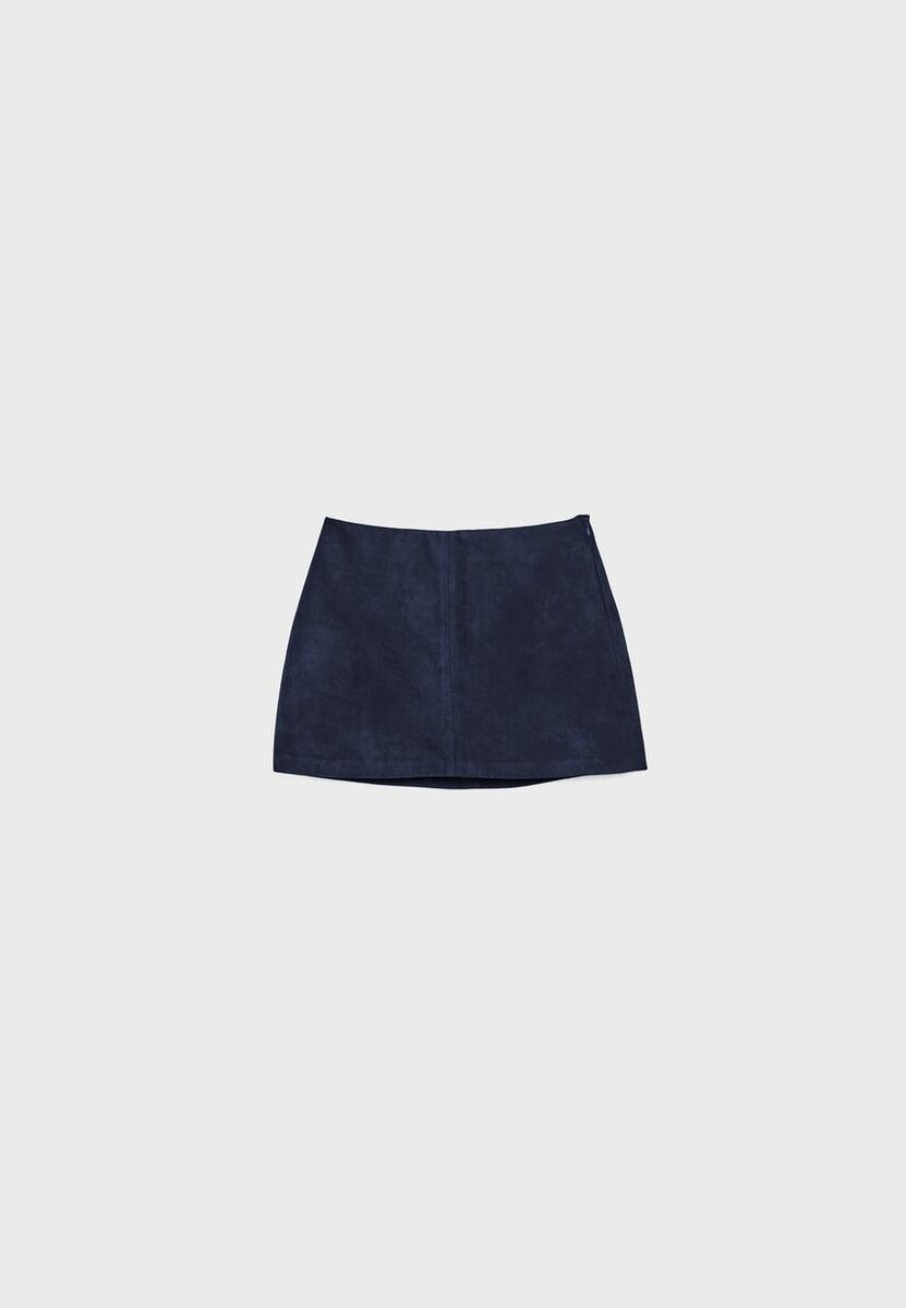Mini-Skort en tissu simili-suède. Fermeture à glissière latérale invisible. Disponible en plusieurs couleurs.