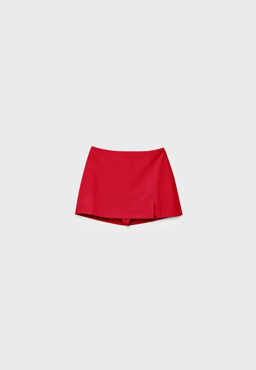 Skort taille mi-haute avec fente latérale. Fermeture à glissière latérale invisible.