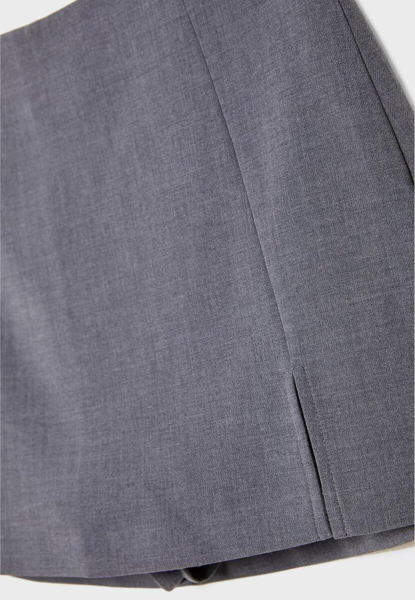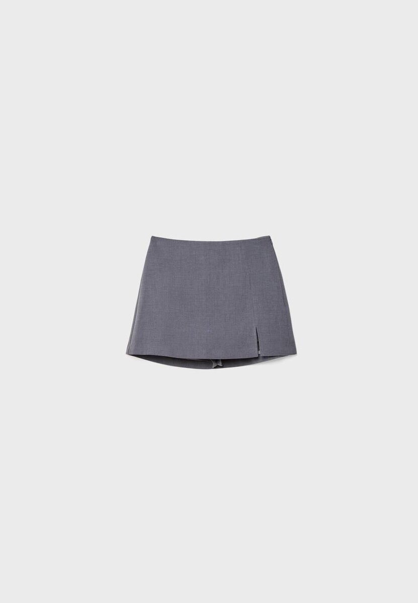 Skort taille mi-haute avec fente latérale. Fermeture à glissière latérale invisible.