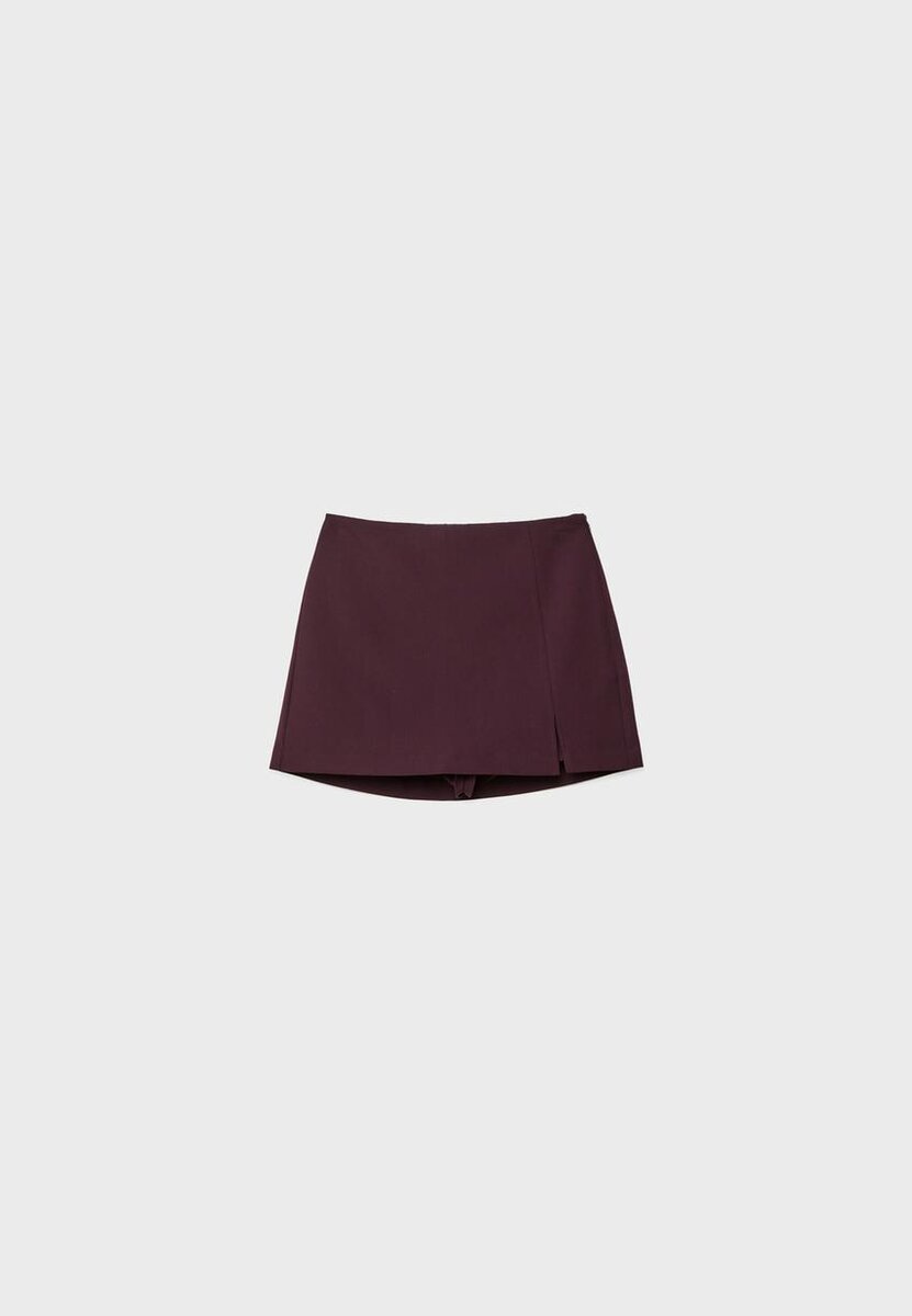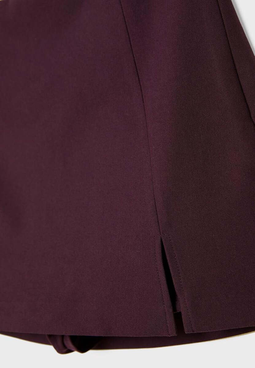 Skort taille mi-haute avec fente latérale. Fermeture à glissière latérale invisible.