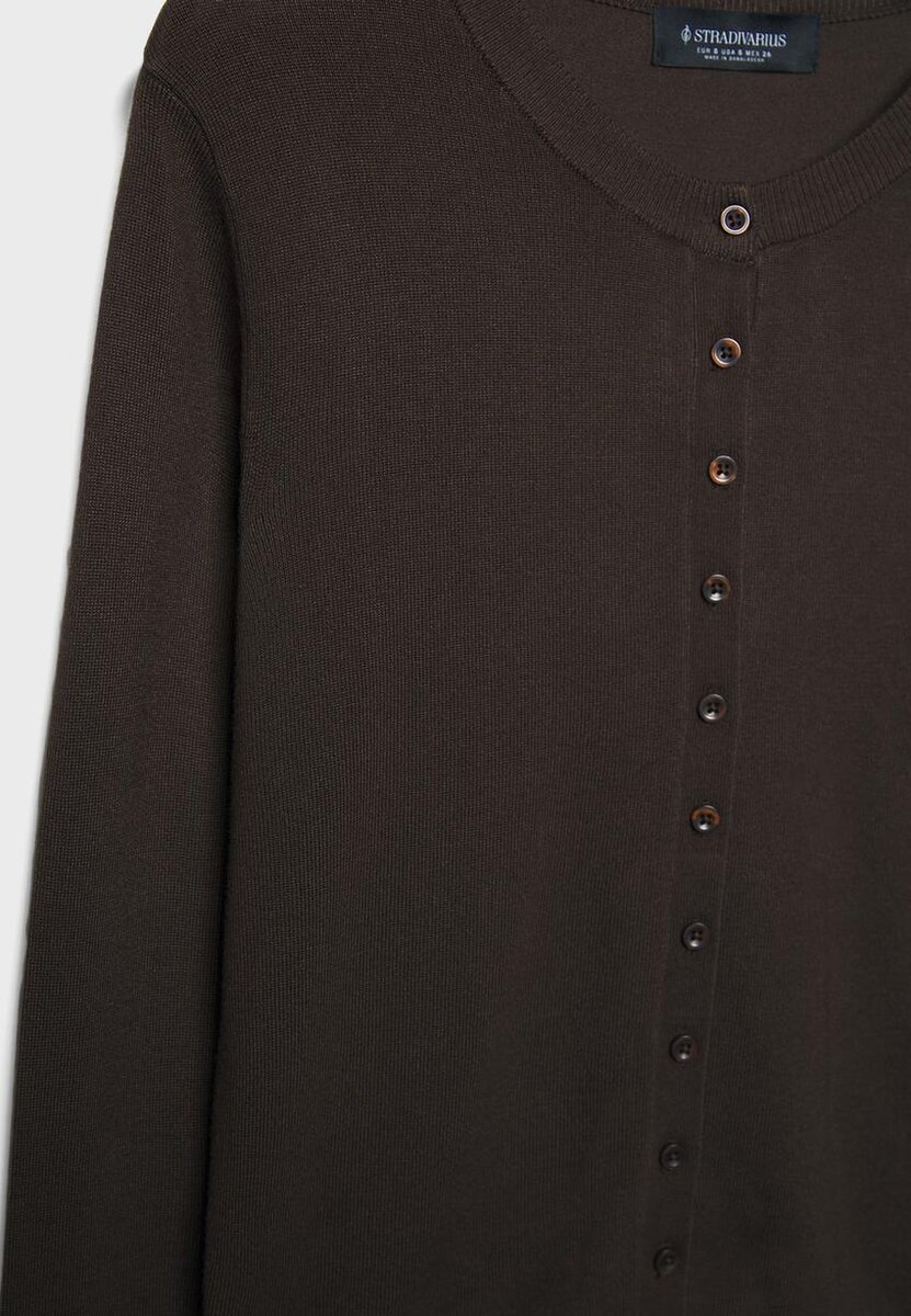 Cardigan en maille coupe classique à col rond et manches longues. Bordures côtelées au col et aux poignets. Fermeture à boutons sur le devant avec boutons ton sur ton. Disponible en plusieurs couleurs.