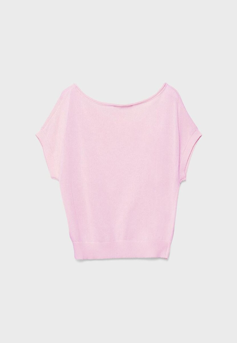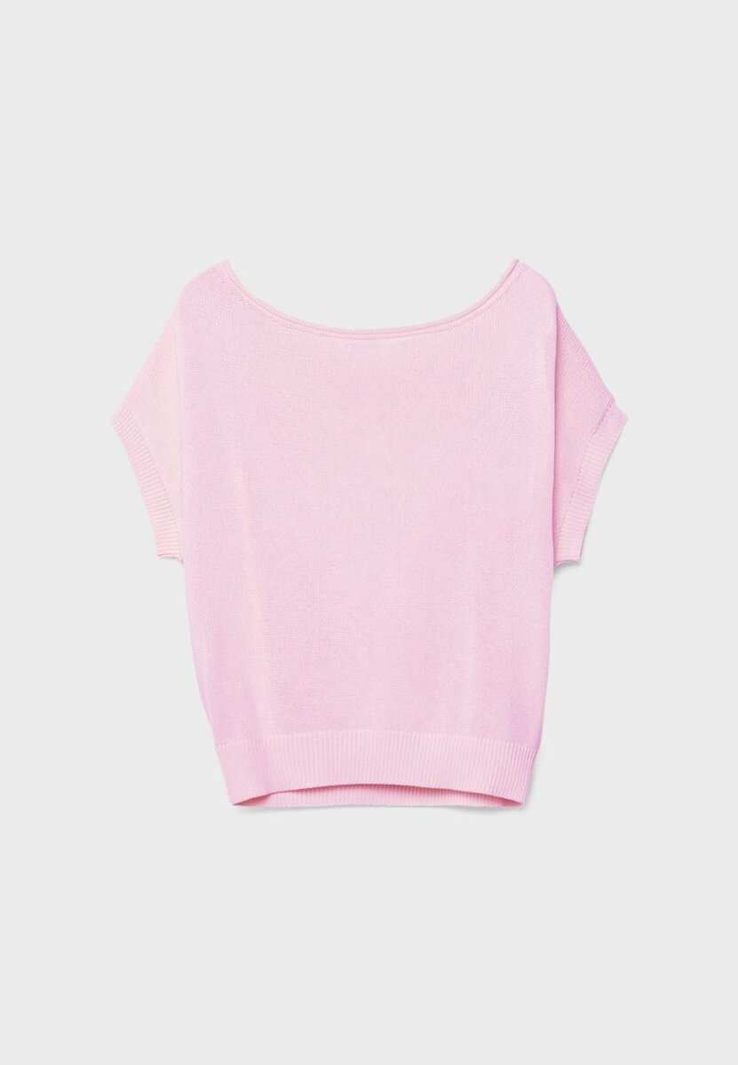 Haut en maille rustique contenant 13 % de lin. Avec col bateau et manches courtes. Bords-côtes. Disponible dans une gamme de couleurs.