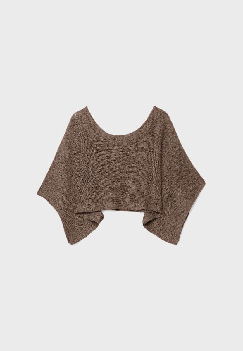 Pull en maille style cape. Col bateau et manches larges. Disponible dans une gamme de couleurs.