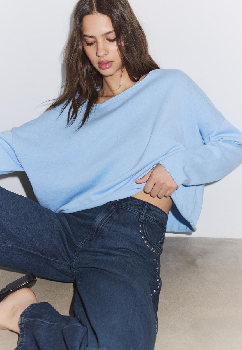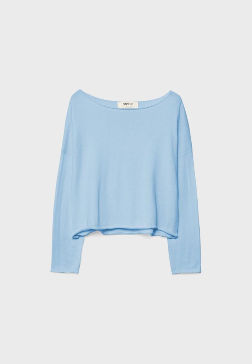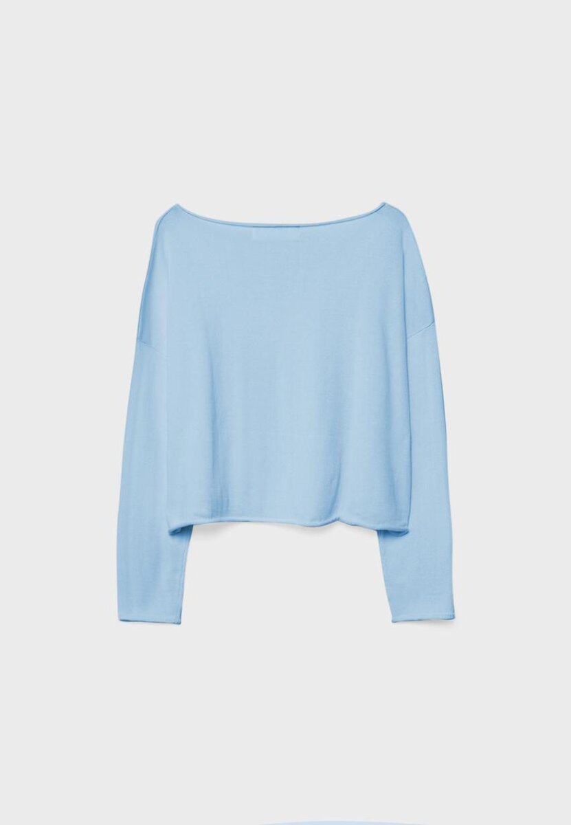 Pull court à manches longues et col bateau. Finitions Seamless. Disponible en plusieurs couleurs.