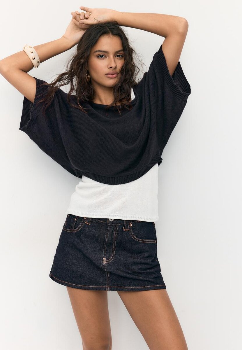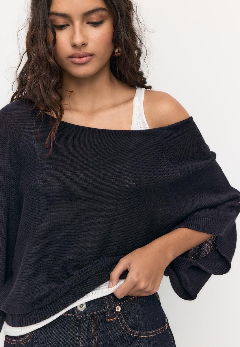 Pull en maille à col bateau avec superposition
