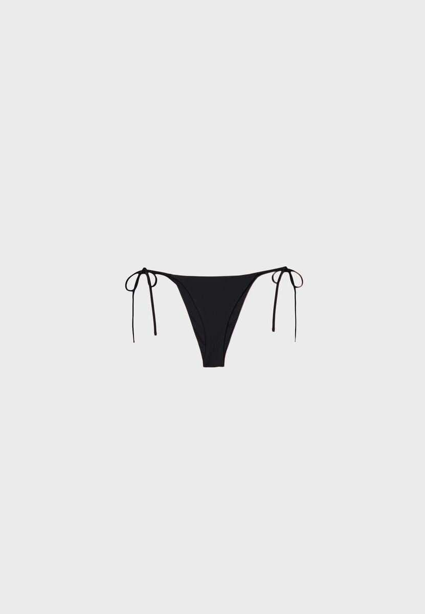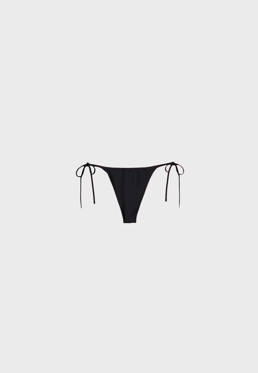 Bas de bikini brésilien en tissu effet satin. Réglable avec des liens. Disponible en plusieurs couleurs.