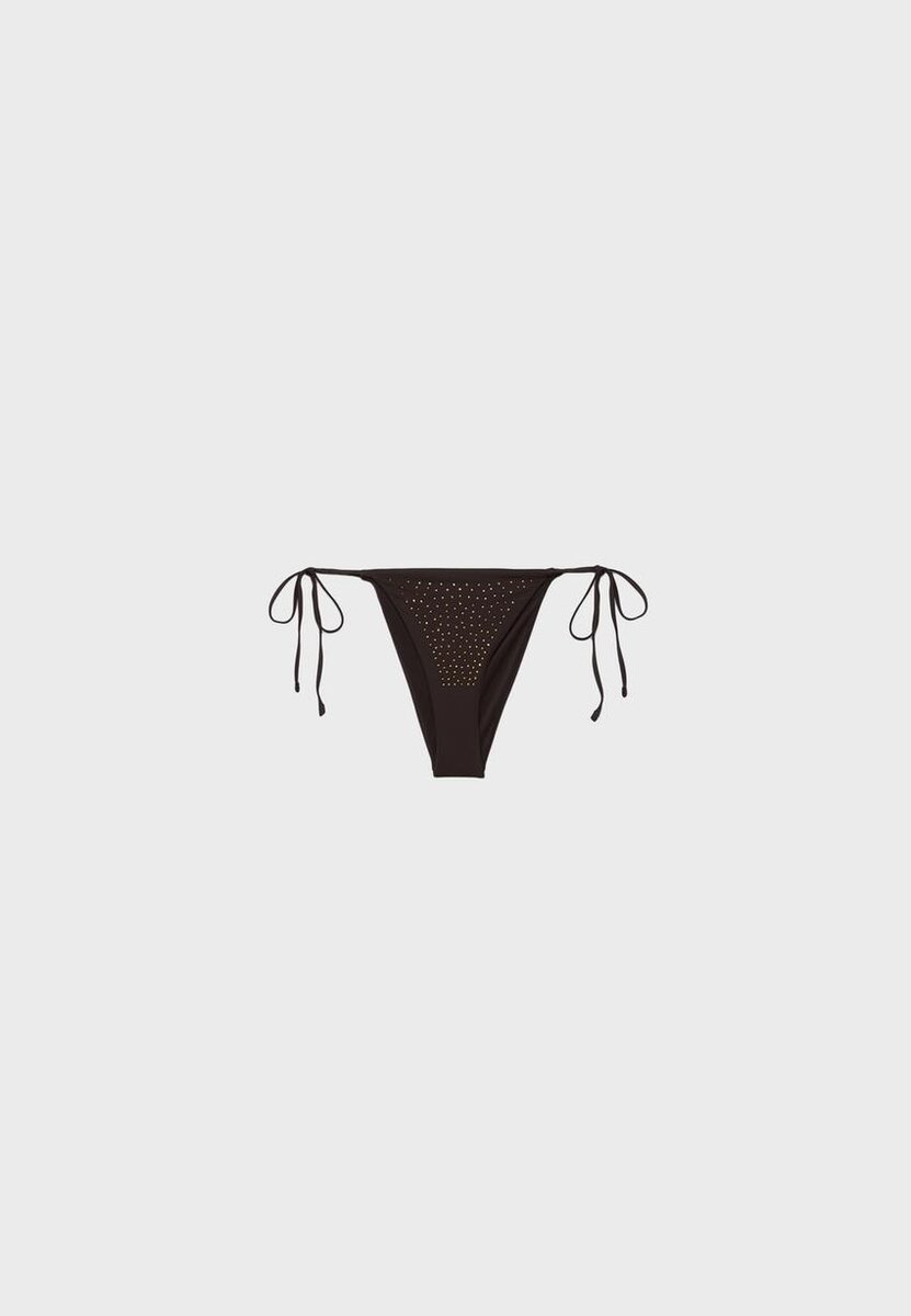 Bas de bikini confectionné dans un tissu scintillant. Ajustable grâce à des liens sur les côtés. Disponible en plusieurs couleurs.