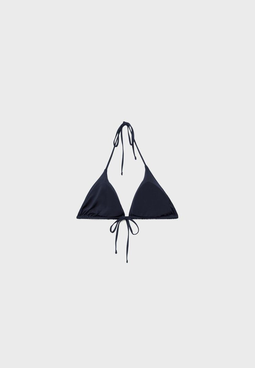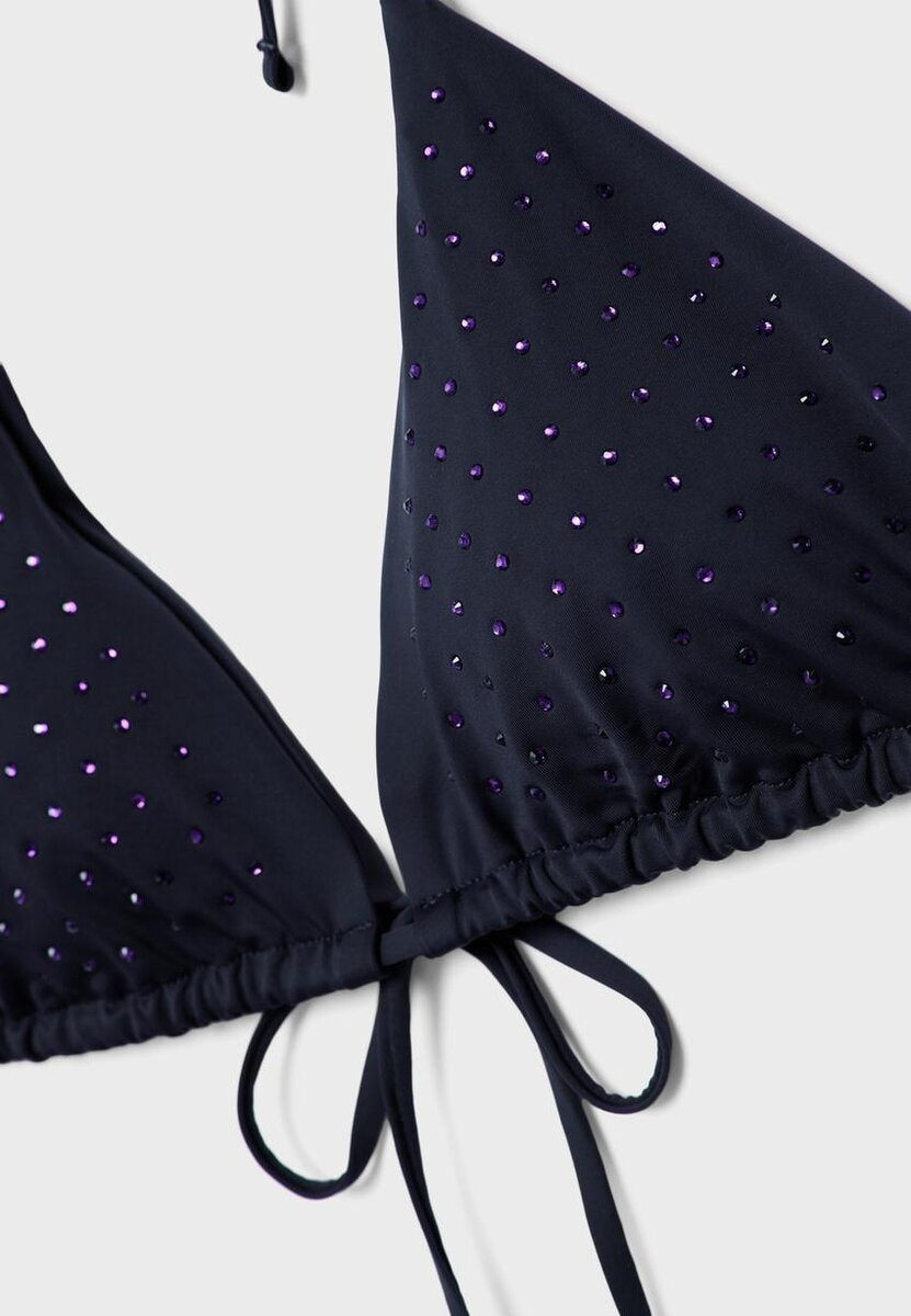 Haut de bikini avec encolure en V et fines bretelles qui se nouent dans le cou. Orné de strass et d’un nœud dans le dos. Disponible en plusieurs couleurs.