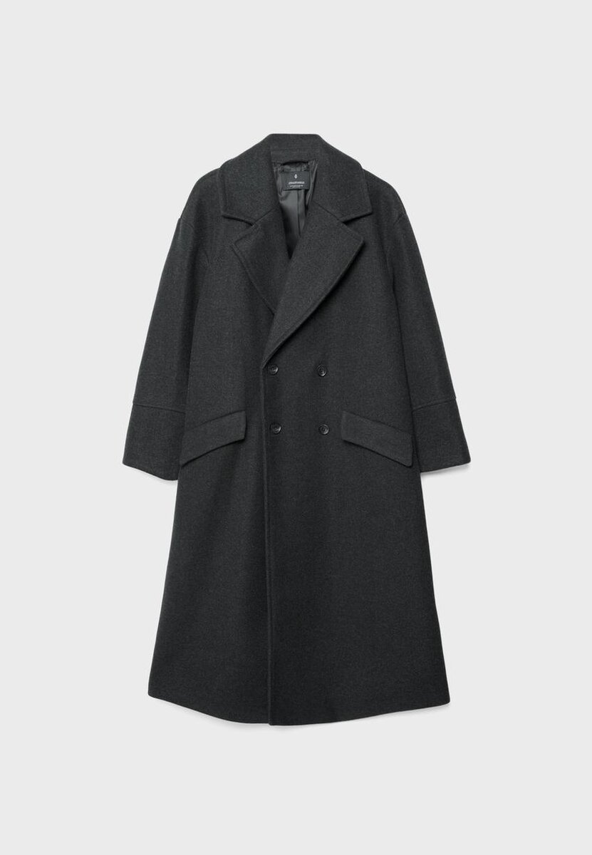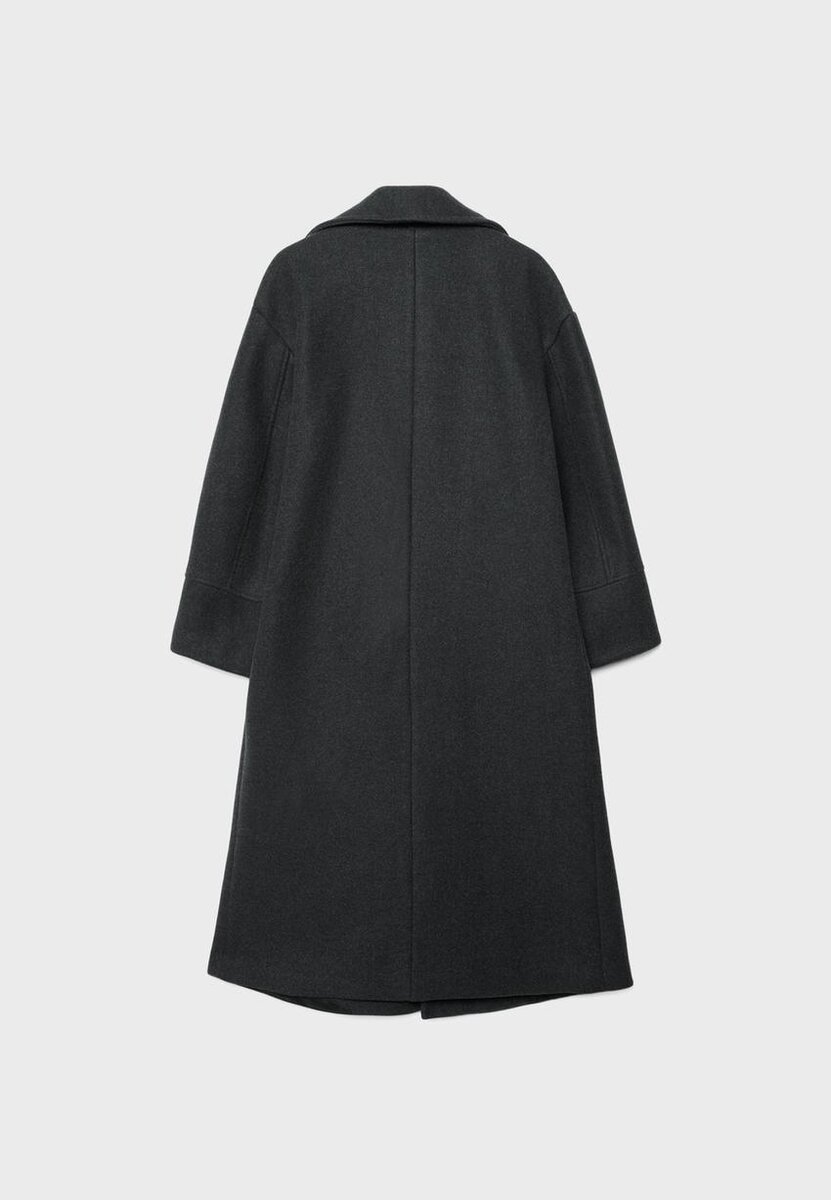 Manteau oversize au toucher doux avec col à revers et manches longues. Fausses poches avant. Fermeture croisée avec boutons contrastés.