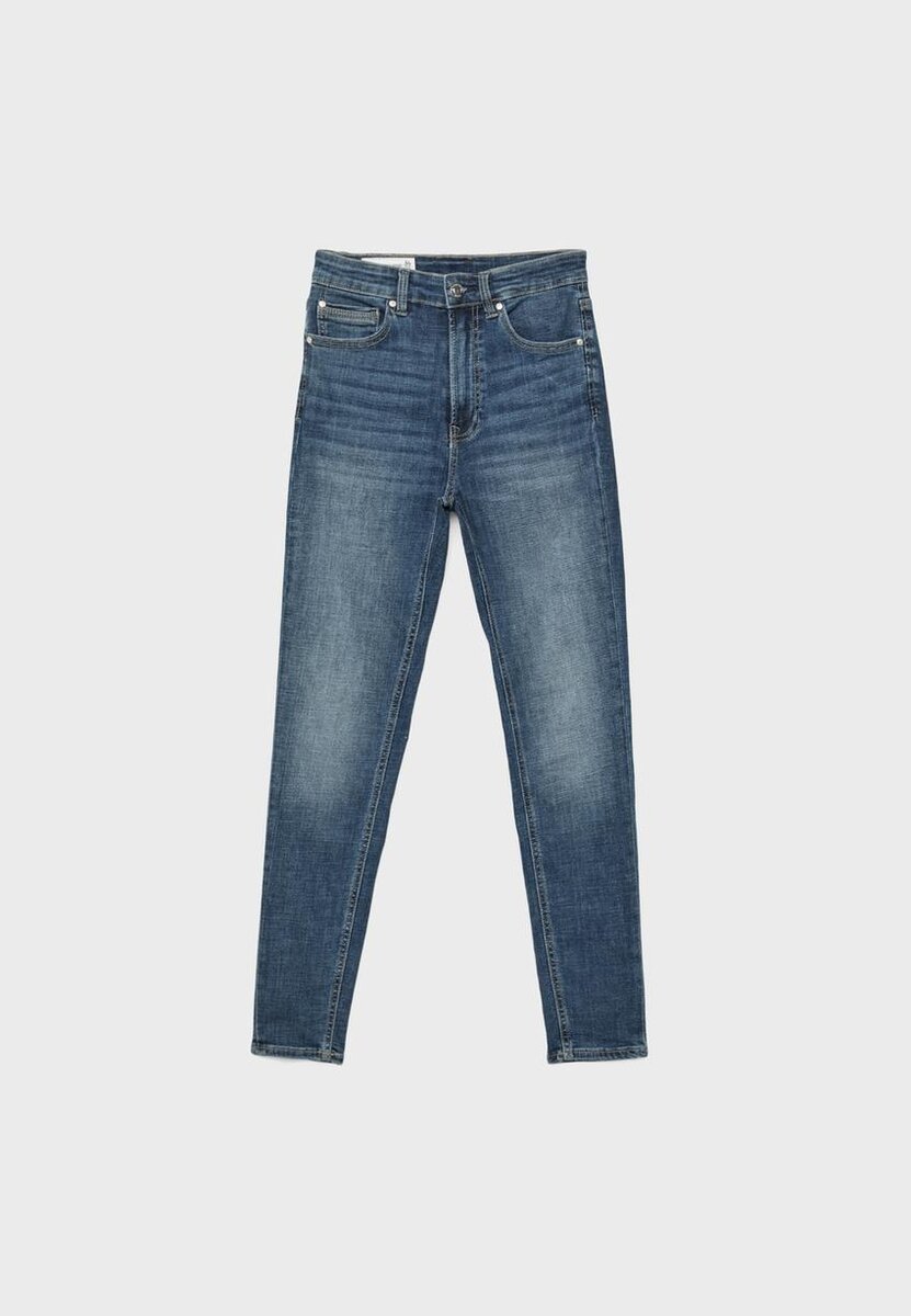 Jean skinny taille très haute Skinny Fit avec cinq poches. Fermeture à glissière sur le devant et boutons métalliques. Disponible en plusieurs couleurs.