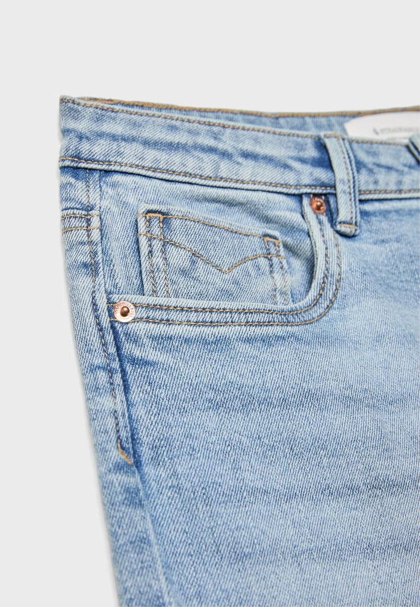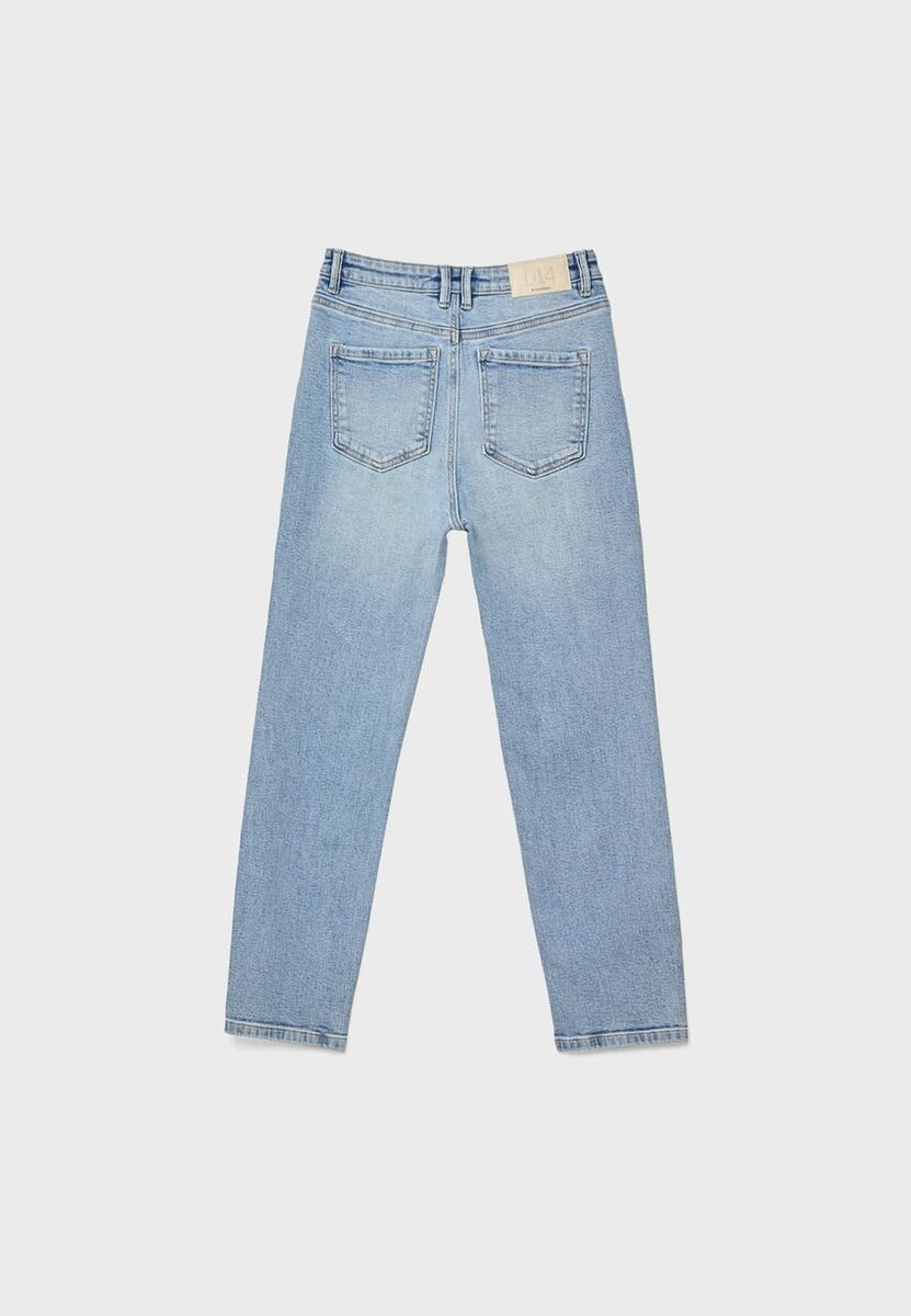 Jean taille haute avec ceinture élastiquée, confectionné dans un tissu extensible pour plus de confort. Poches avant et poches plaquées à l’arrière. Coupe slim avec longueur cheville.