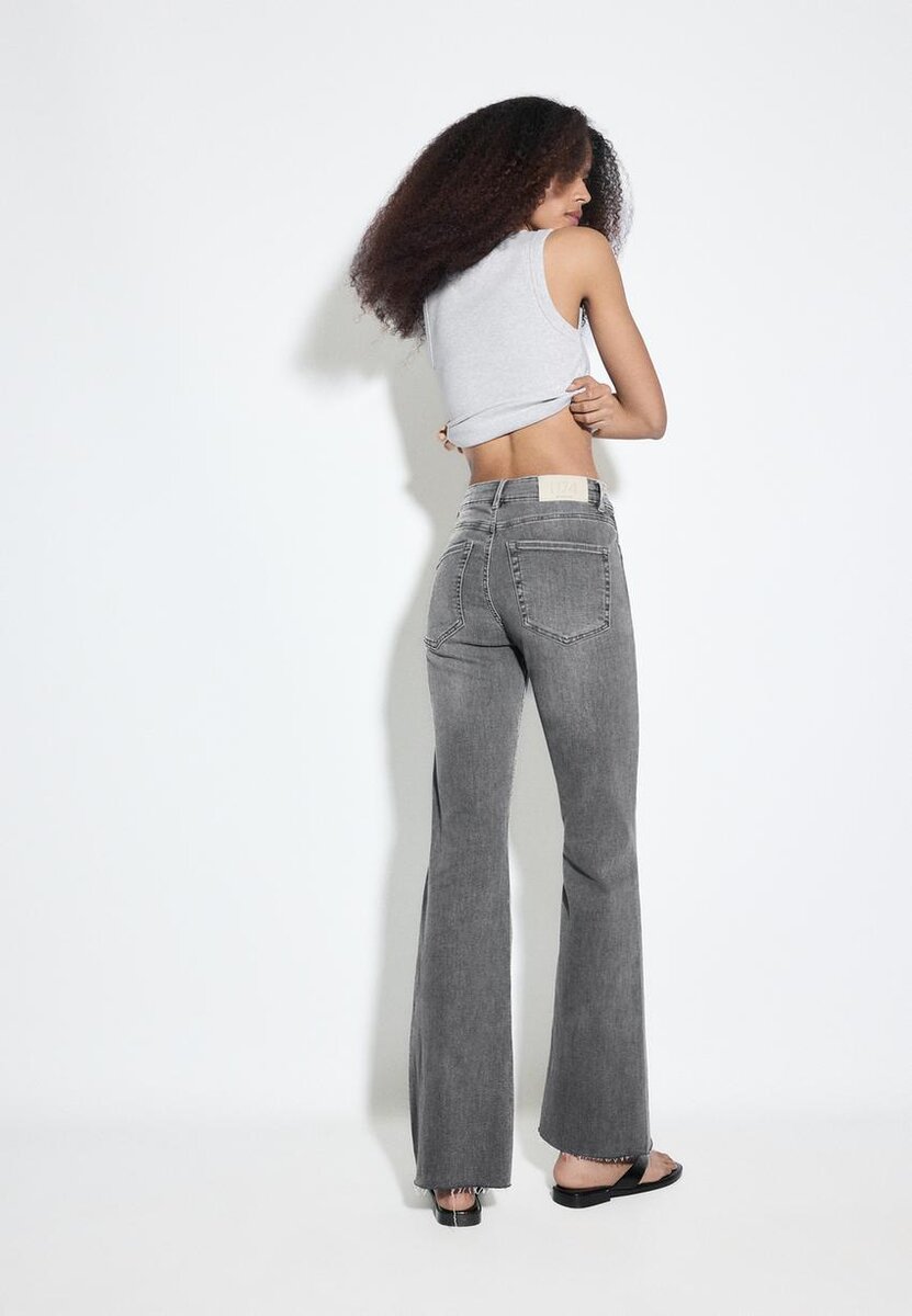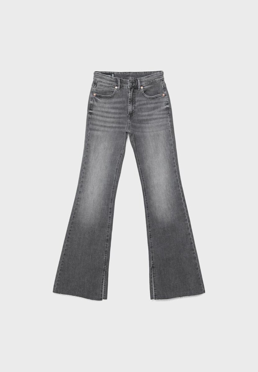 Jean taille haute avec poches latérales. Poches plaquées à l’arrière. Taille avec passants de ceinture. Flared Hem. Ourlet vieilli avec fente intérieure sur le côté. Braguette à fermeture éclair sur le devant et boutons métalliques. Disponible en plusieurs couleurs.