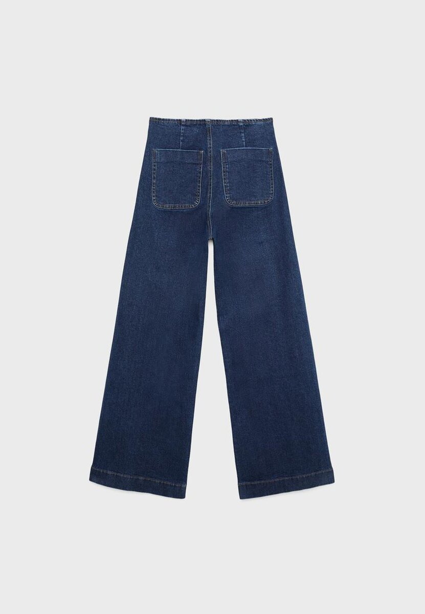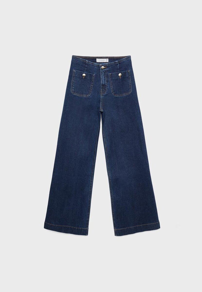 Jean taille haute avec poches plaquées à l’avant et boutons dorés. Poches plaquées à l’arrière, ourlets Flared, braguette zippée et fermeture par bouton sur le haut. Disponible en plusieurs couleurs.